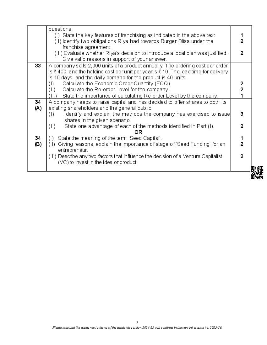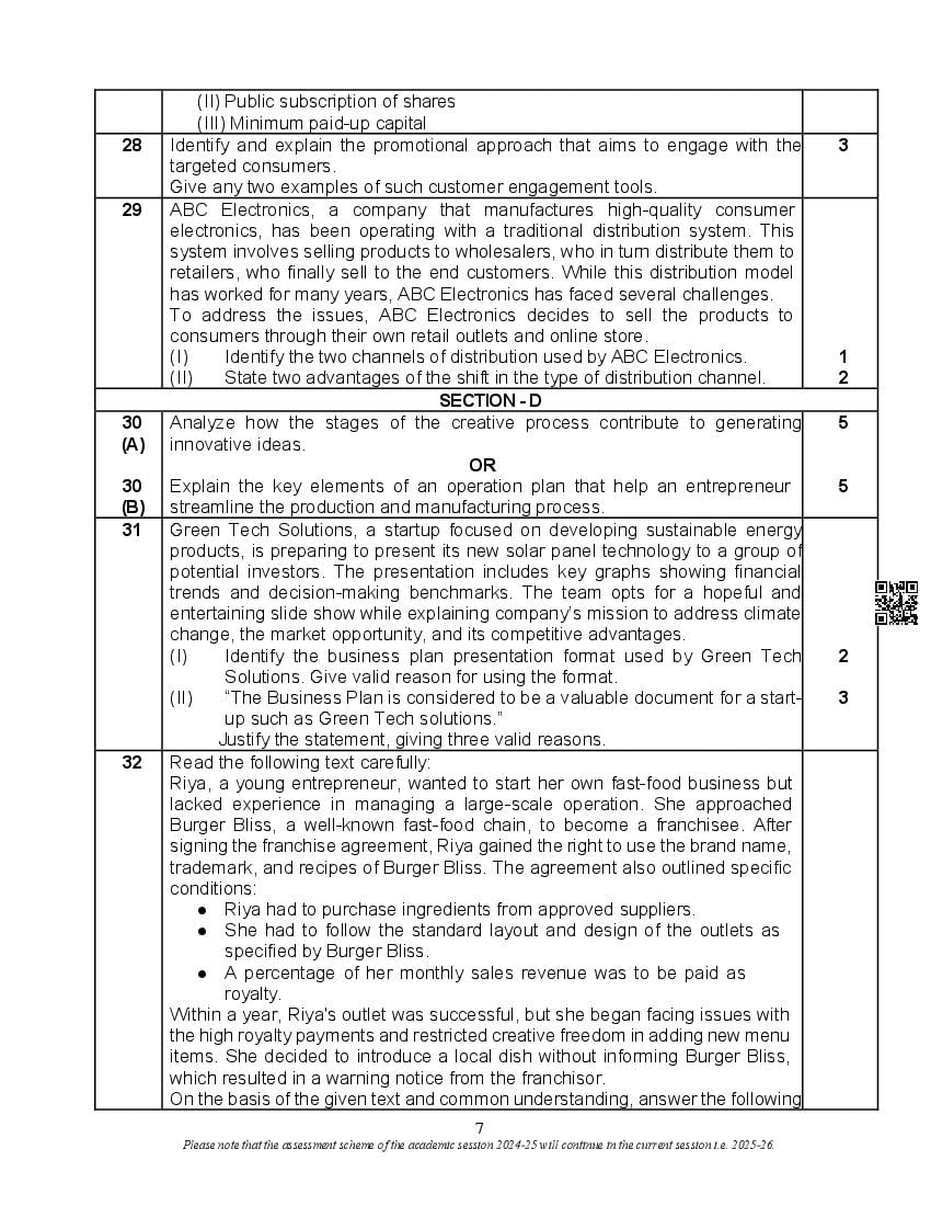 CBSE Class 12 Entrepreneurship Sample Paper Solution 2025 PDF Download Link – Click Here to Download Solutions / Marking Scheme