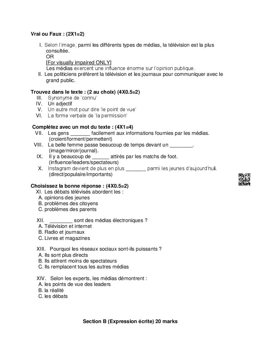 - The class 12 sample paper solutions for French subject includes the correct answers of all questions asked in the model question paper.