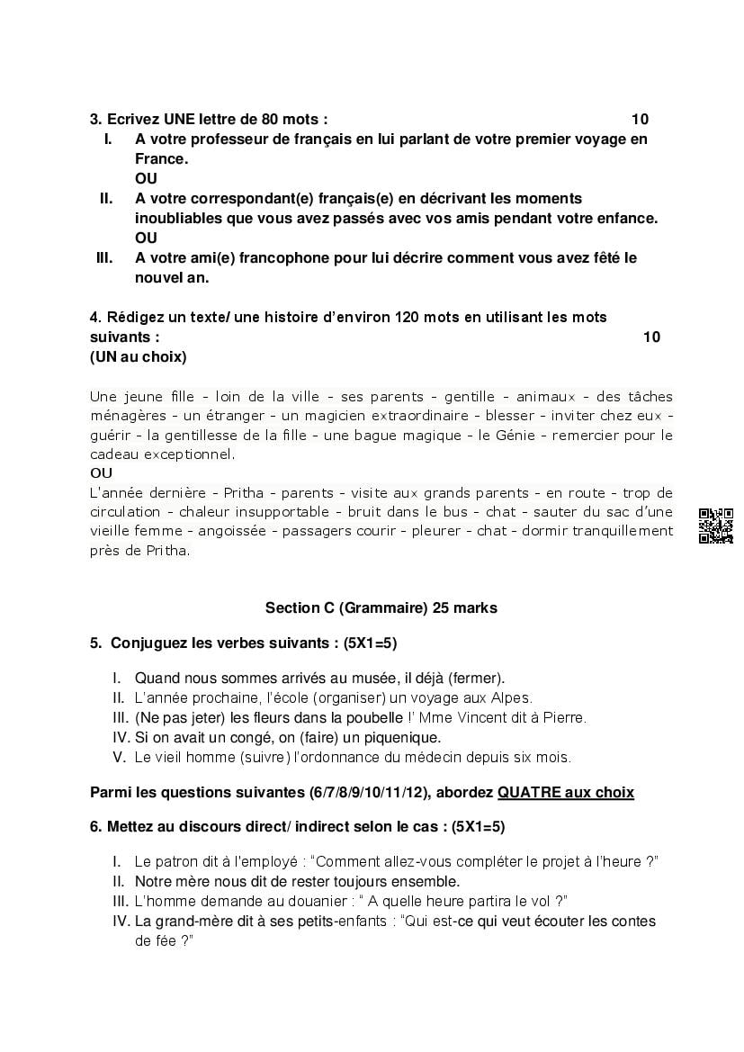 The complete CBSE class 12 French sample paper 2026 is as follows. However the download link for cbse sample paper French class 12 marking scheme is given above.