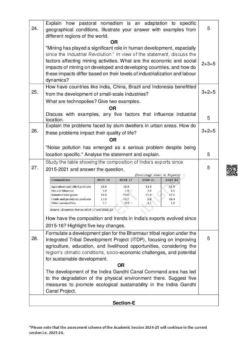 CBSE Class 12 Geography Sample Paper Solution 2025 PDF Download Link – Click Here to Download Solutions / Marking Scheme