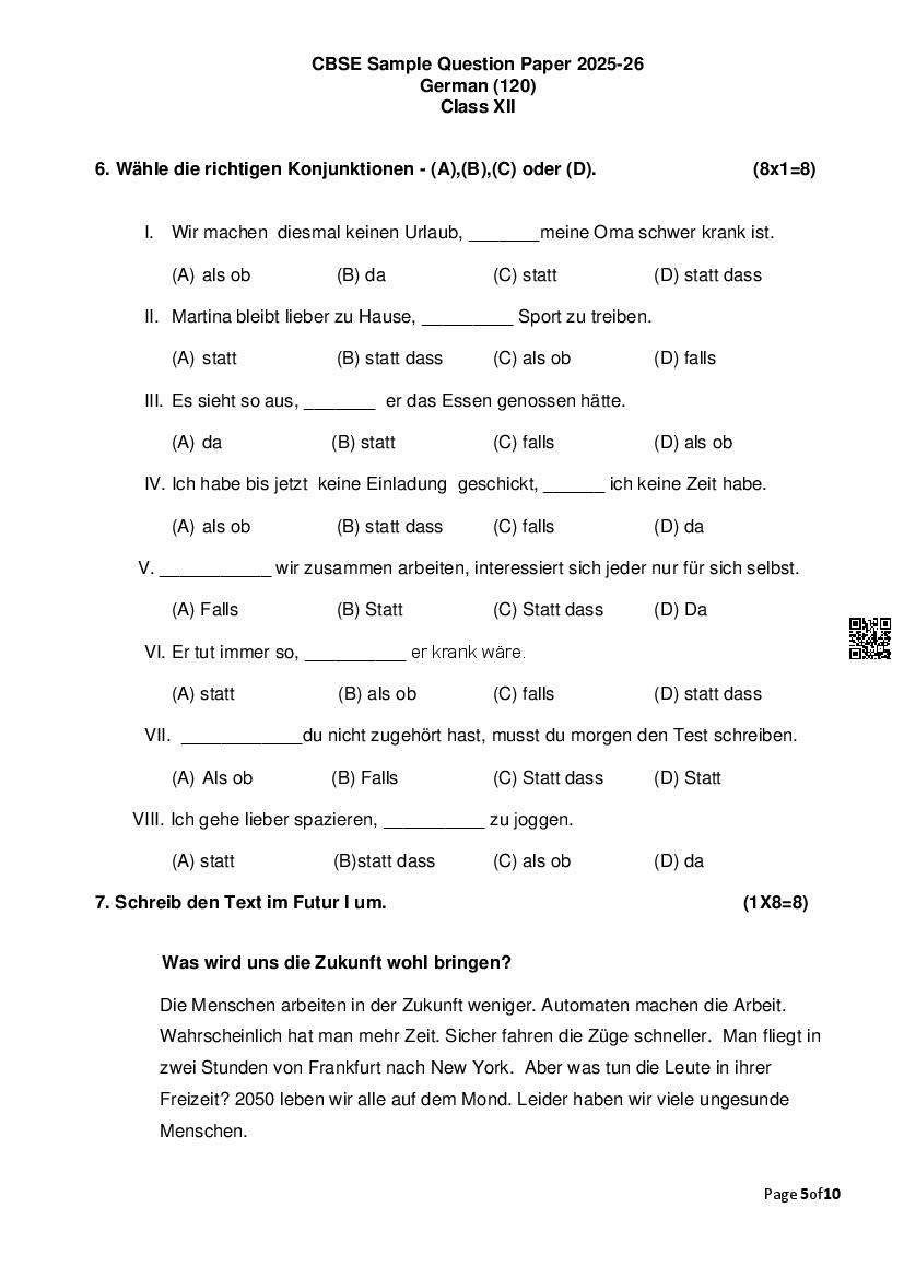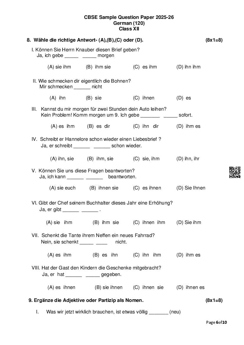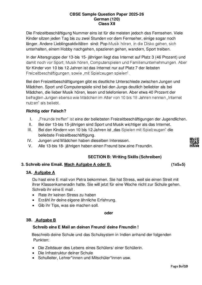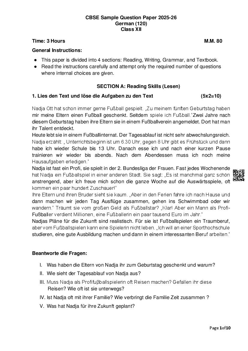 CBSE Class 12 Sample Paper 2026 for German View Download