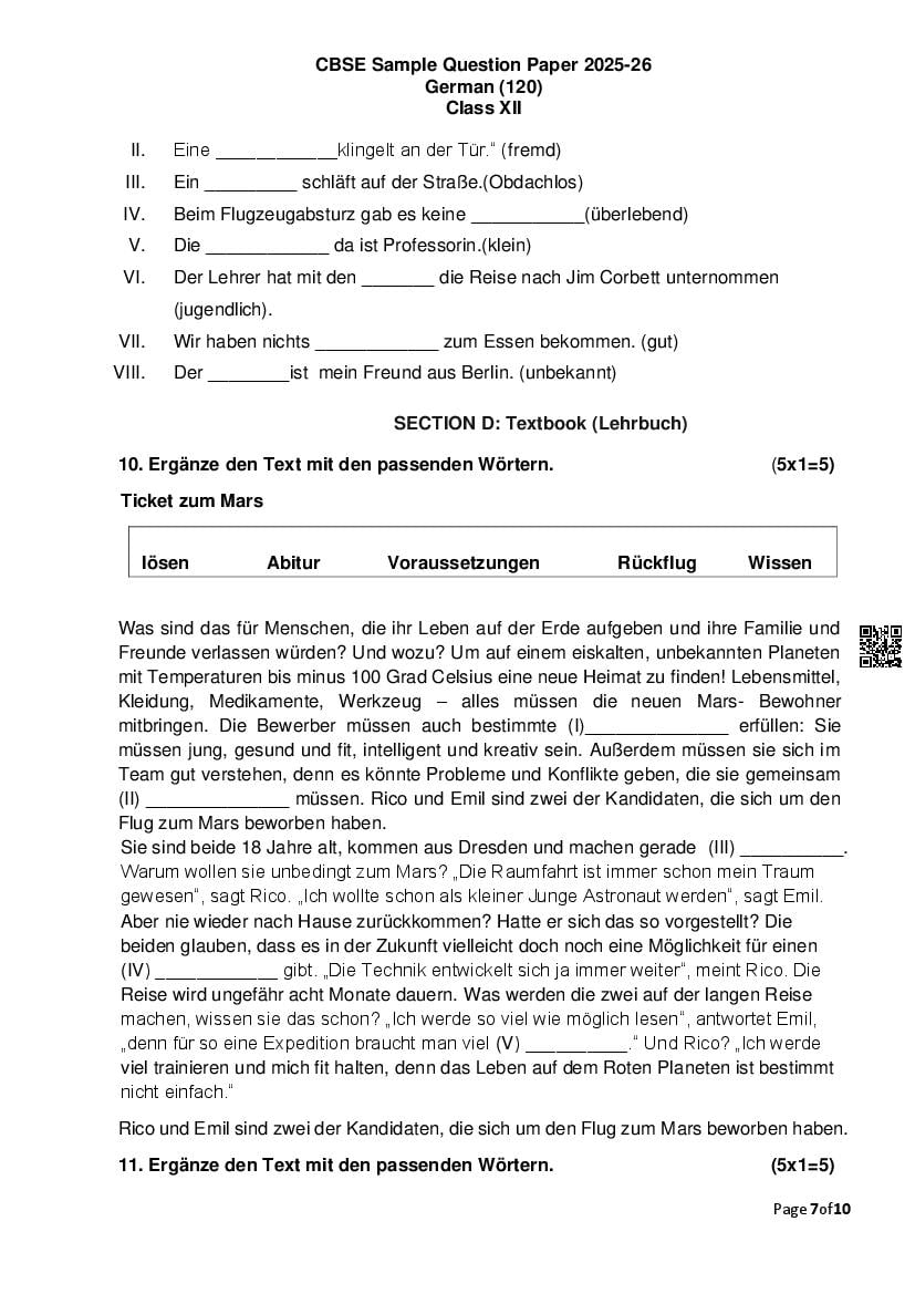 - CBSE has released the CBSE German sample paper class 12 2026 solutions at cbseacademic.nic.in.