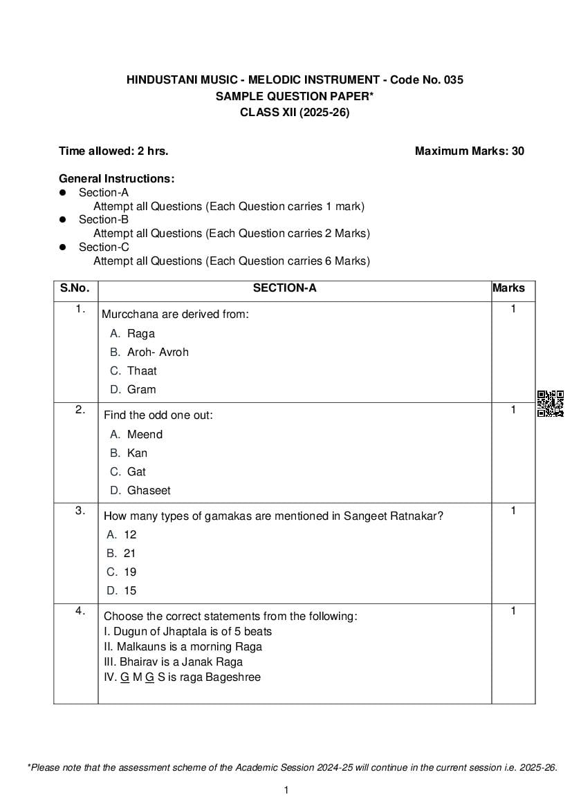 If you have any queries on CBSE Class 12 Hindustani Music Melodic Instruments Sample Paper 2026, then please ask in comments below.