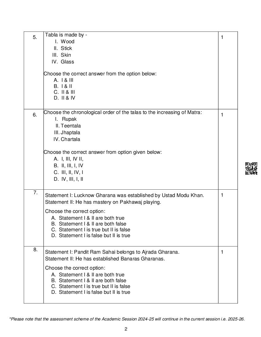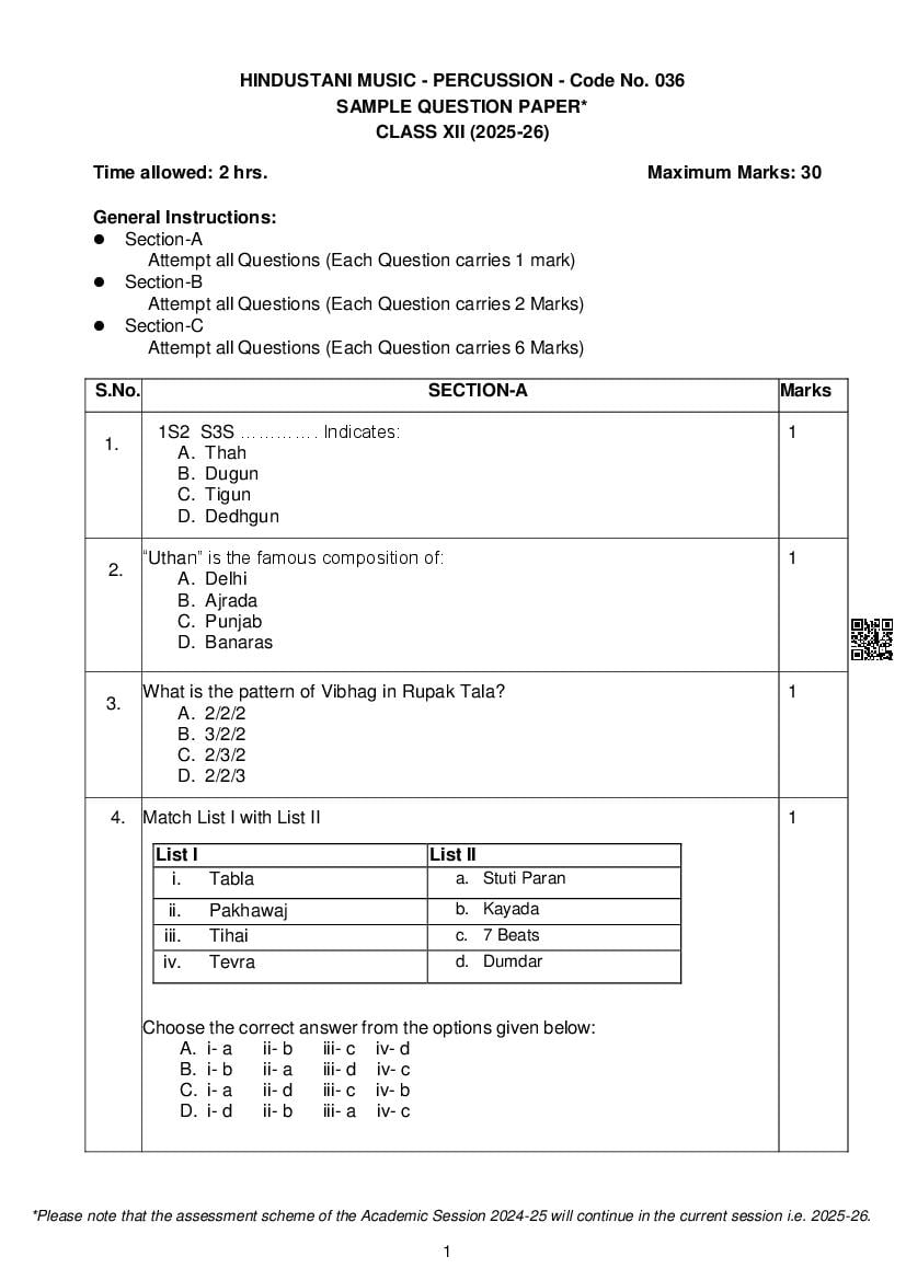 If you have any queries on CBSE Class 12 Hindustani Music Percussion Instrument Sample Paper 2026, then please ask in comments below.