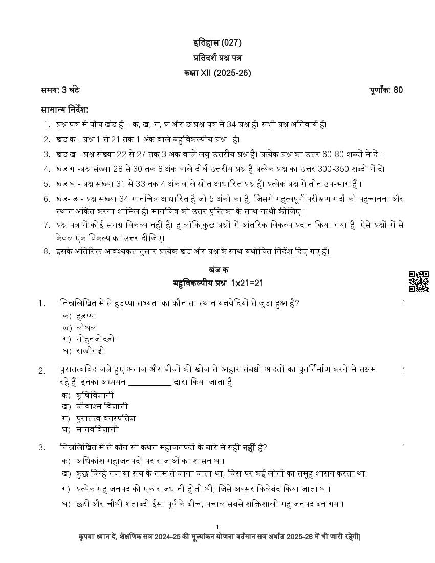 CBSE Class 12 Sample Paper 2026 for History View Download