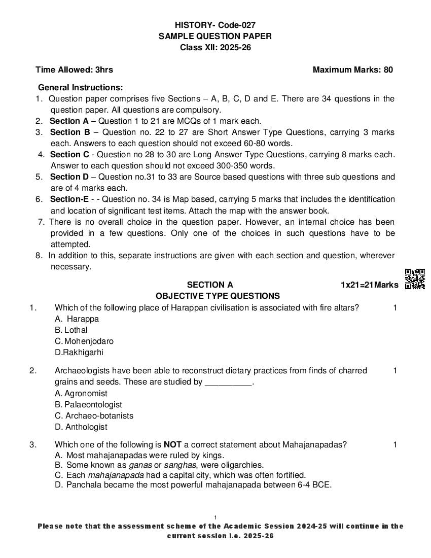 | Study Material Here | CBSE Sample Paper 2026 for Class 12 History |