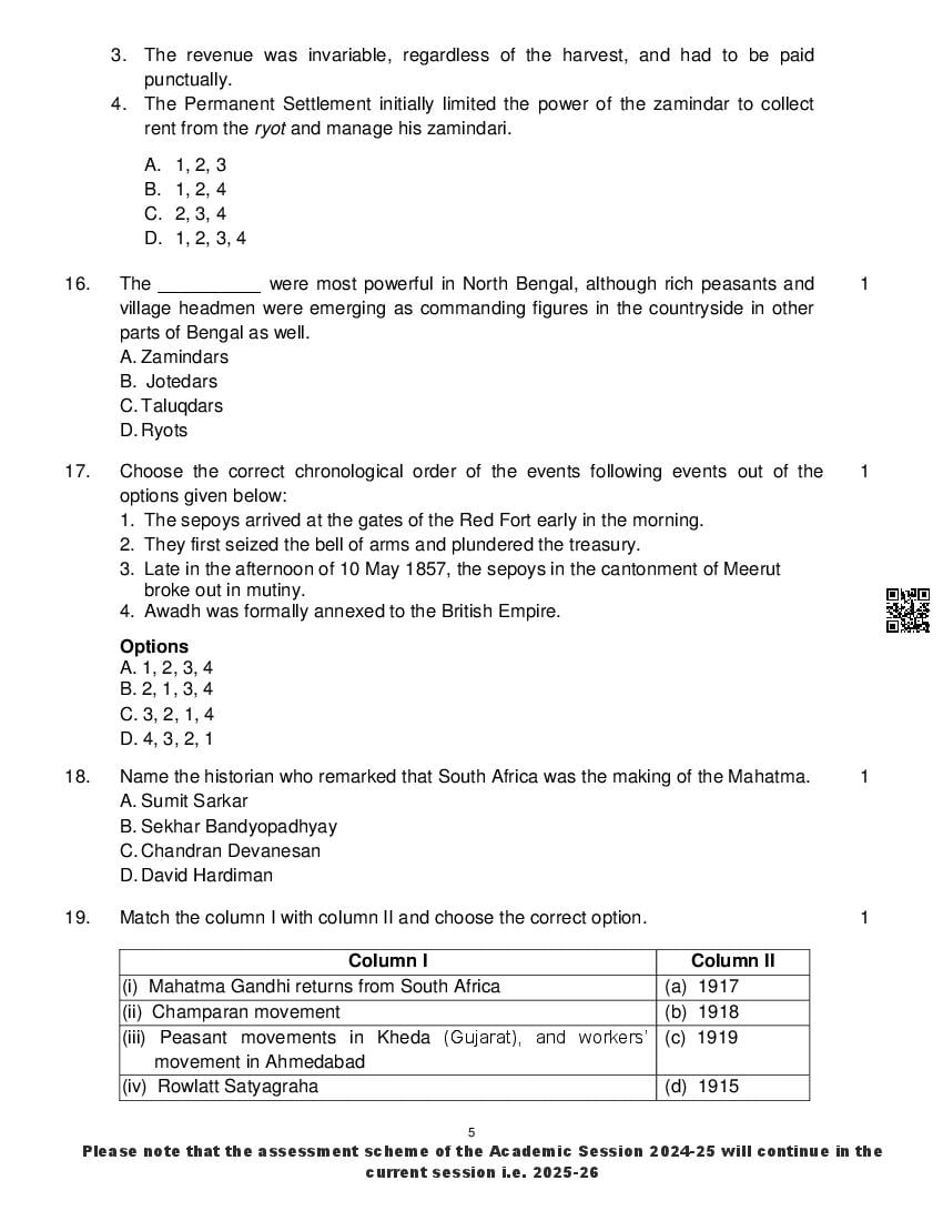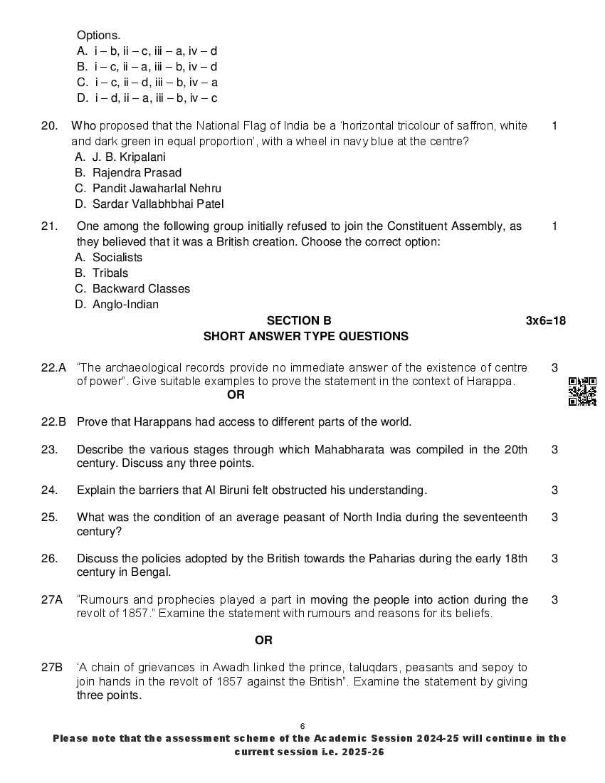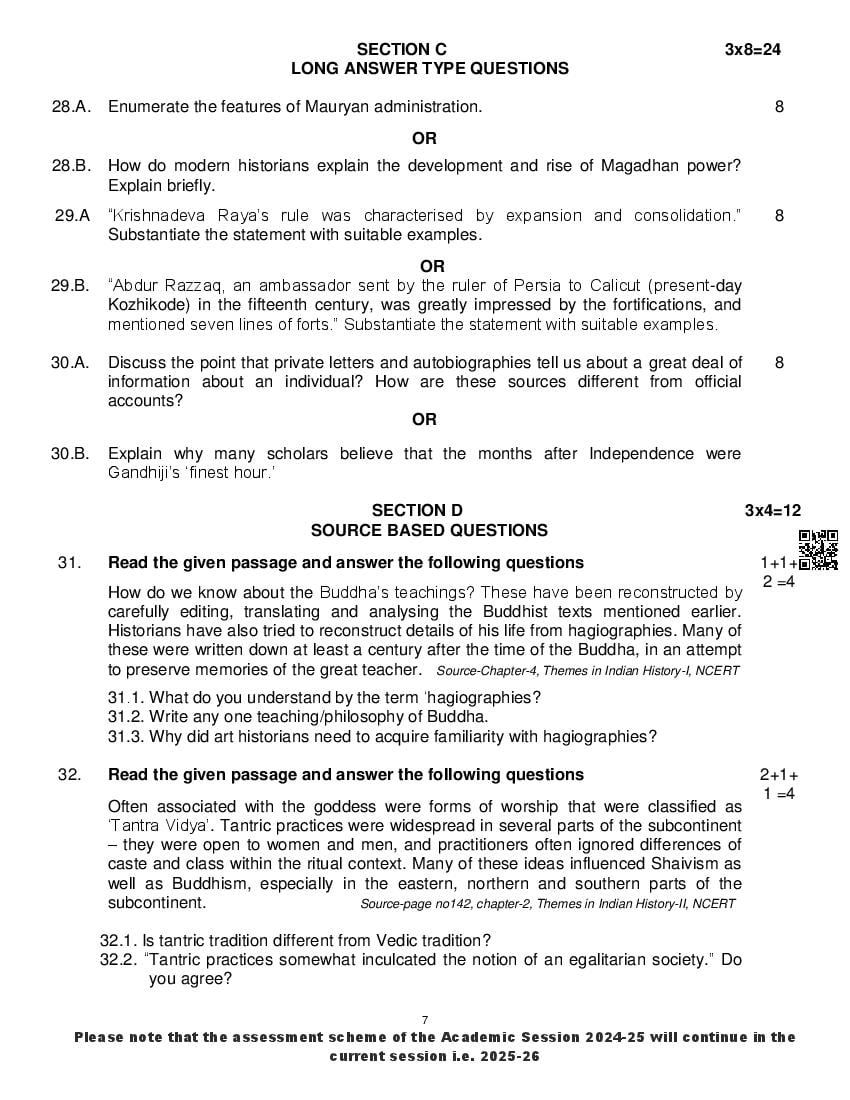 The complete CBSE class 12 History sample paper 2026 is as follows. However the download link for cbse sample paper History class 12 marking scheme is given above.