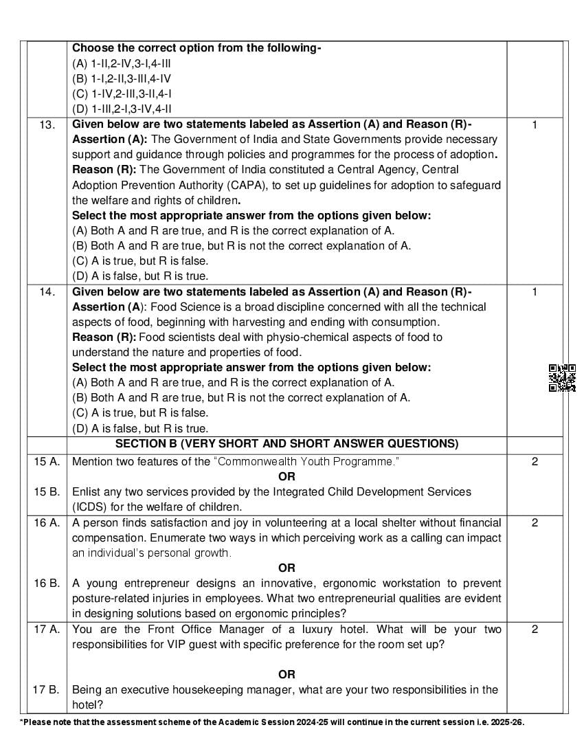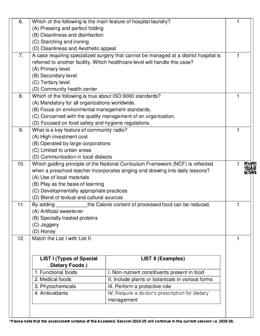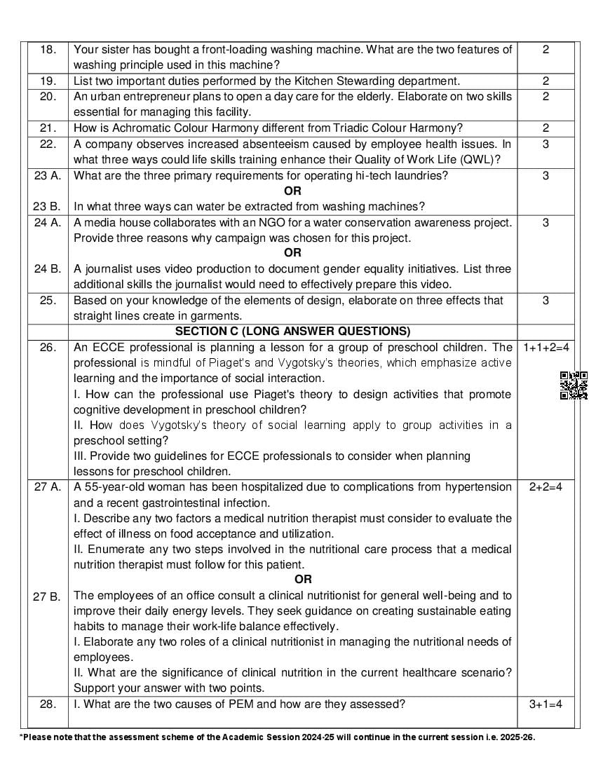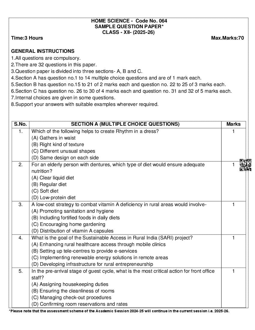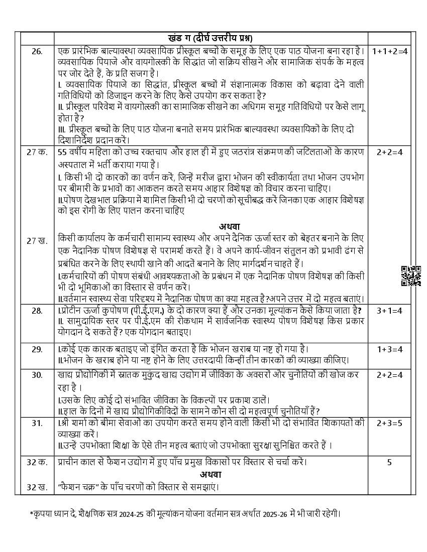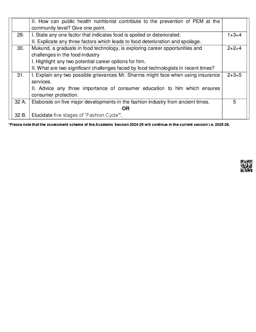 The complete CBSE class 12 Home Science sample paper 2026 is as follows. However the download link for cbse sample paper Home Science class 12 marking scheme is given above.