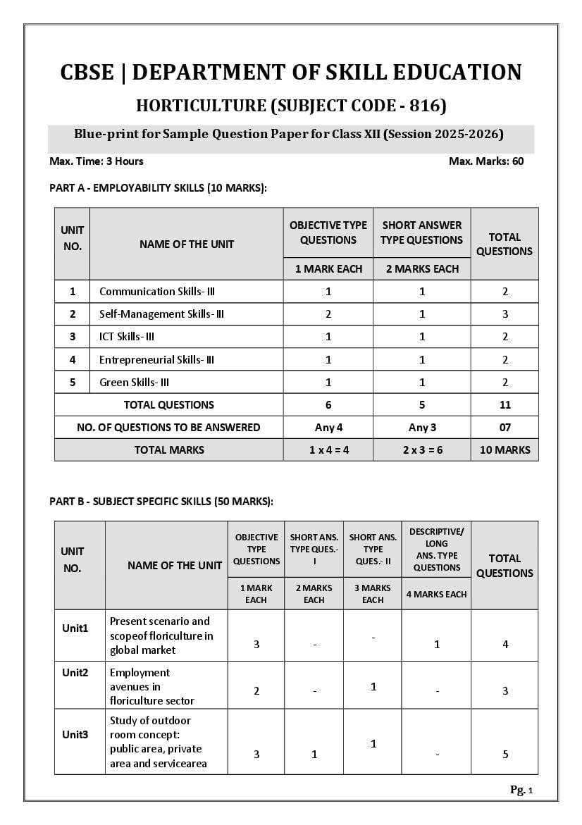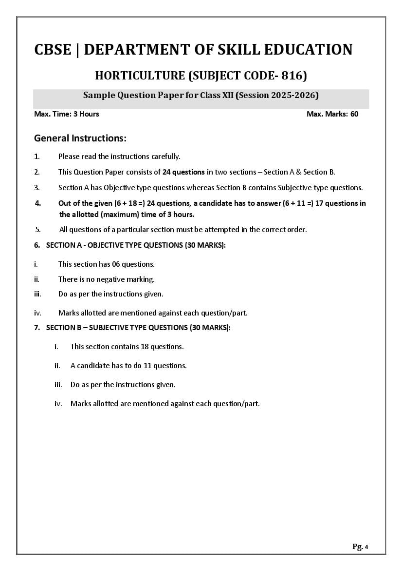 | Study Material Here | CBSE Sample Paper 2026 for Class 12 Horticulture |
