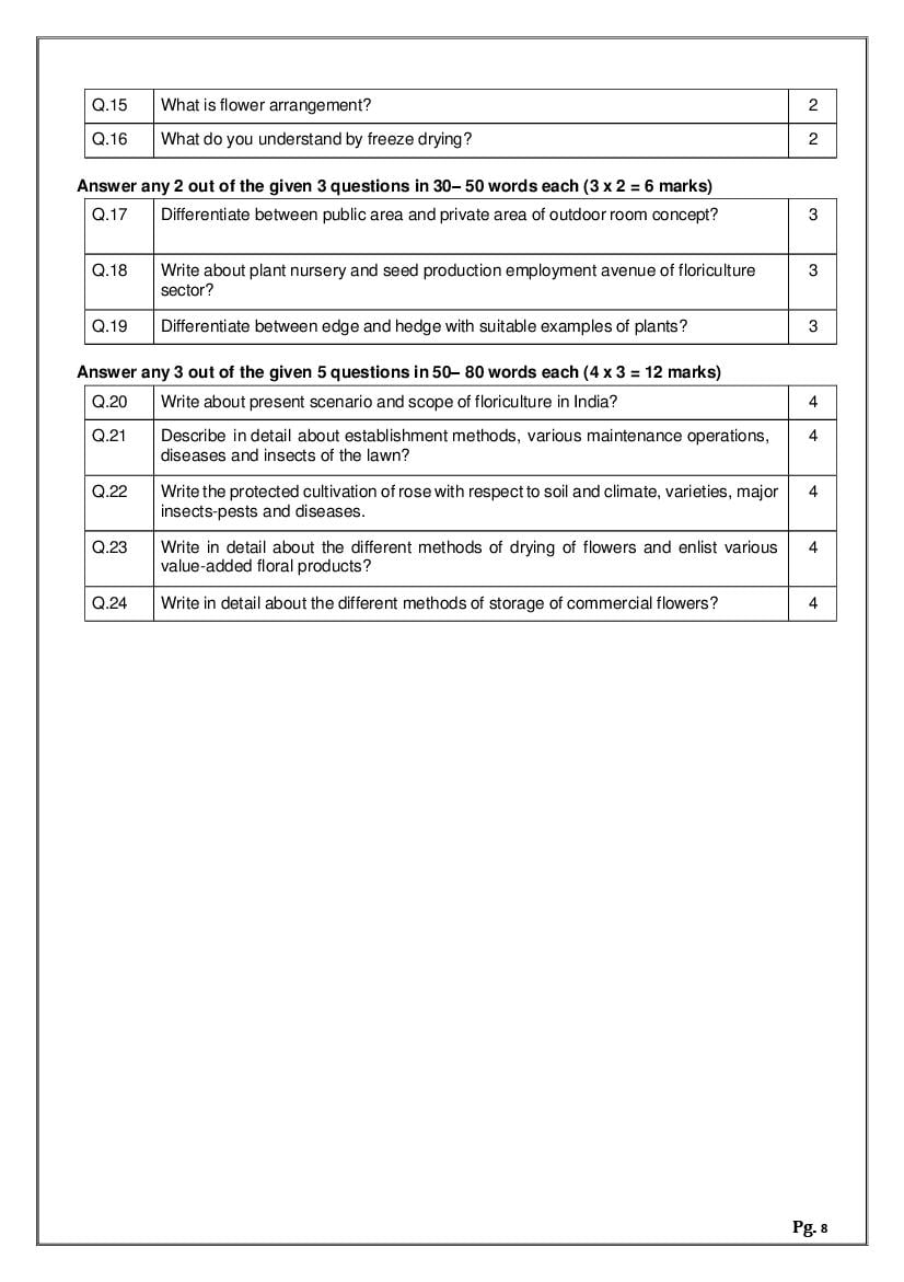 - The class 12 sample paper solutions for Horticulture subject includes the correct answers of all questions asked in the model question paper.