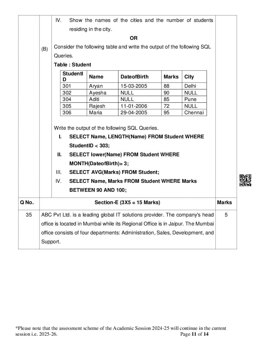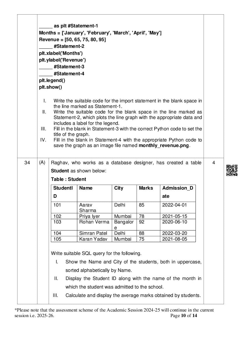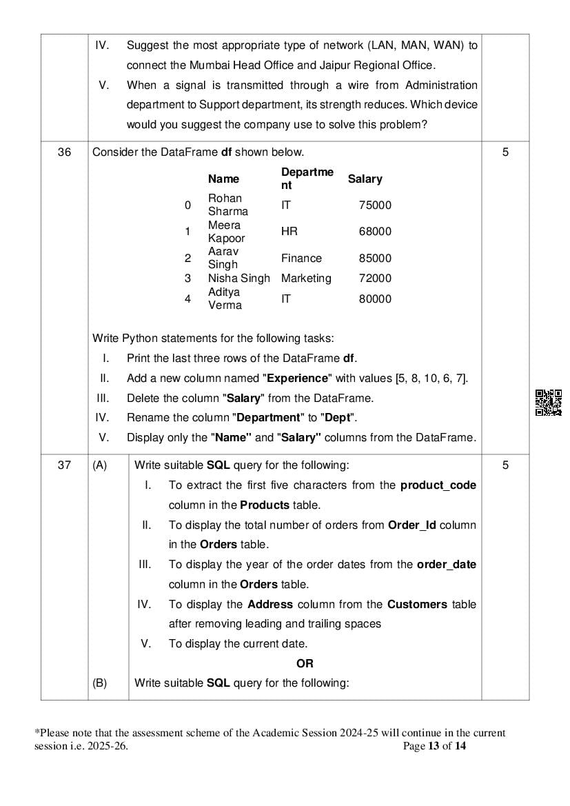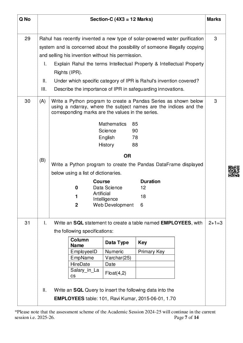 CBSE Class 12 Informatics Practices Sample Paper Solution 2025 PDF Download Link – Click Here to Download Solutions / Marking Scheme