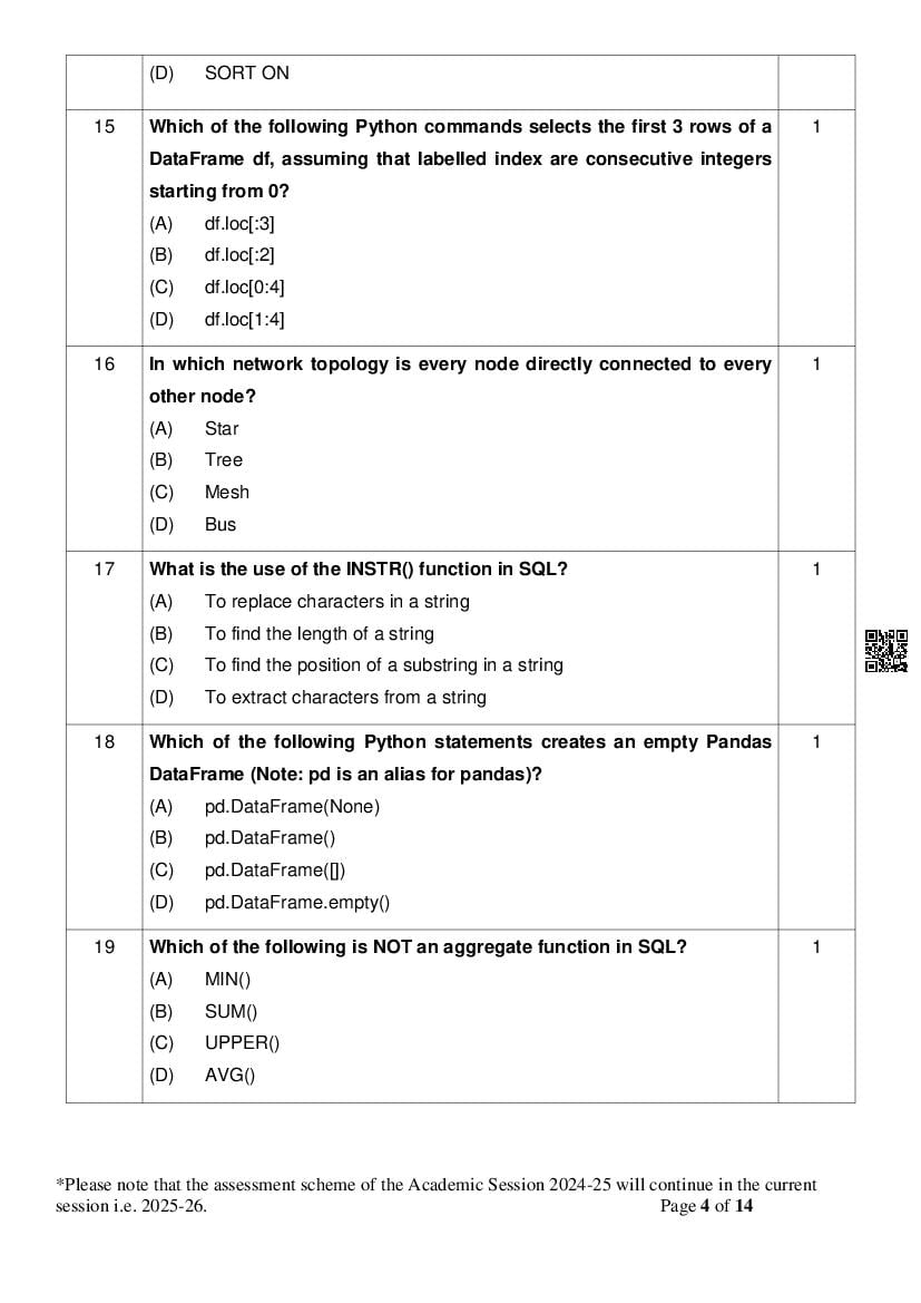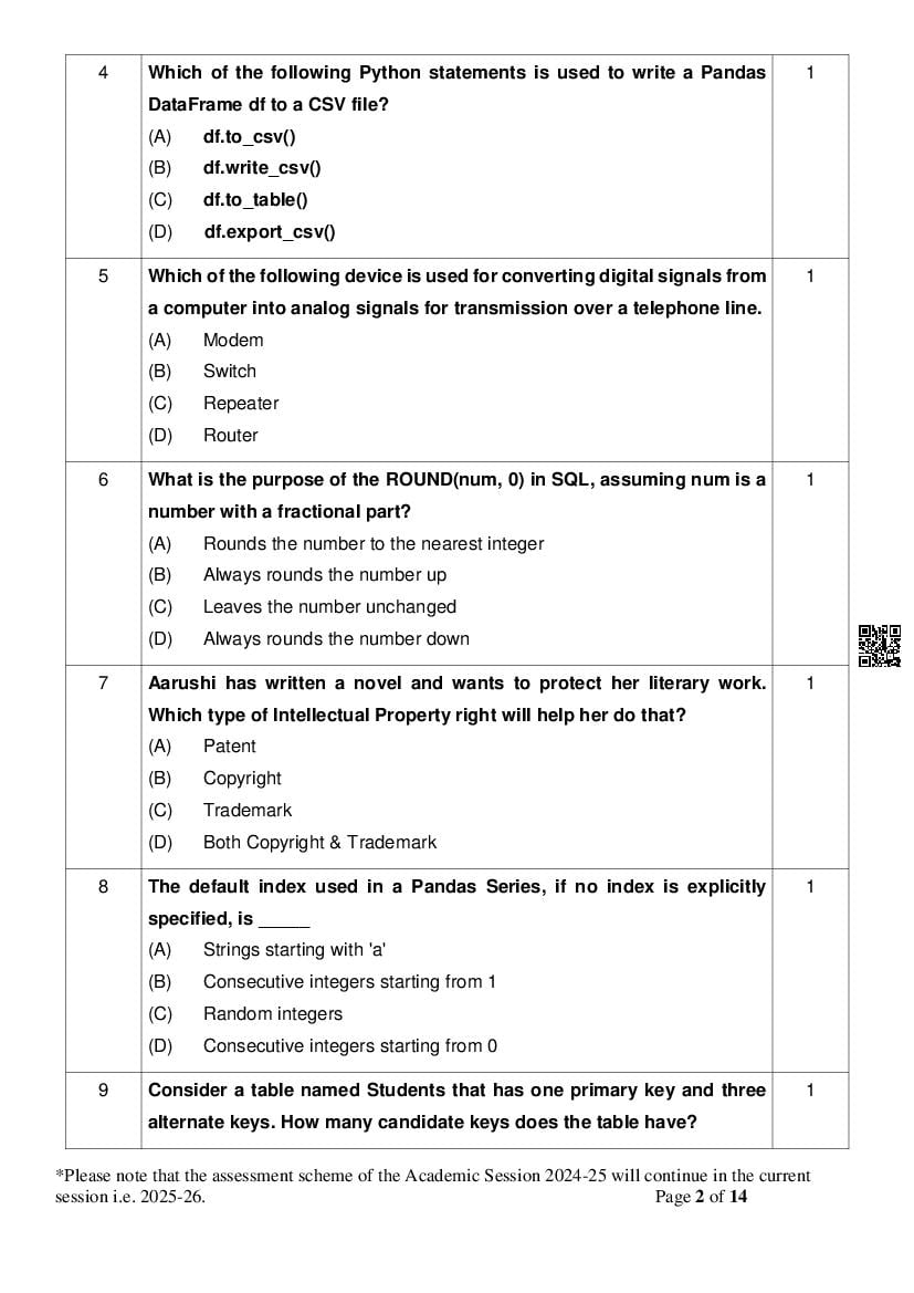 The complete CBSE class 12 Informatics Practices sample paper 2026 is as follows. However the download link for cbse sample paper Informatics Practices class 12 marking scheme is given above.