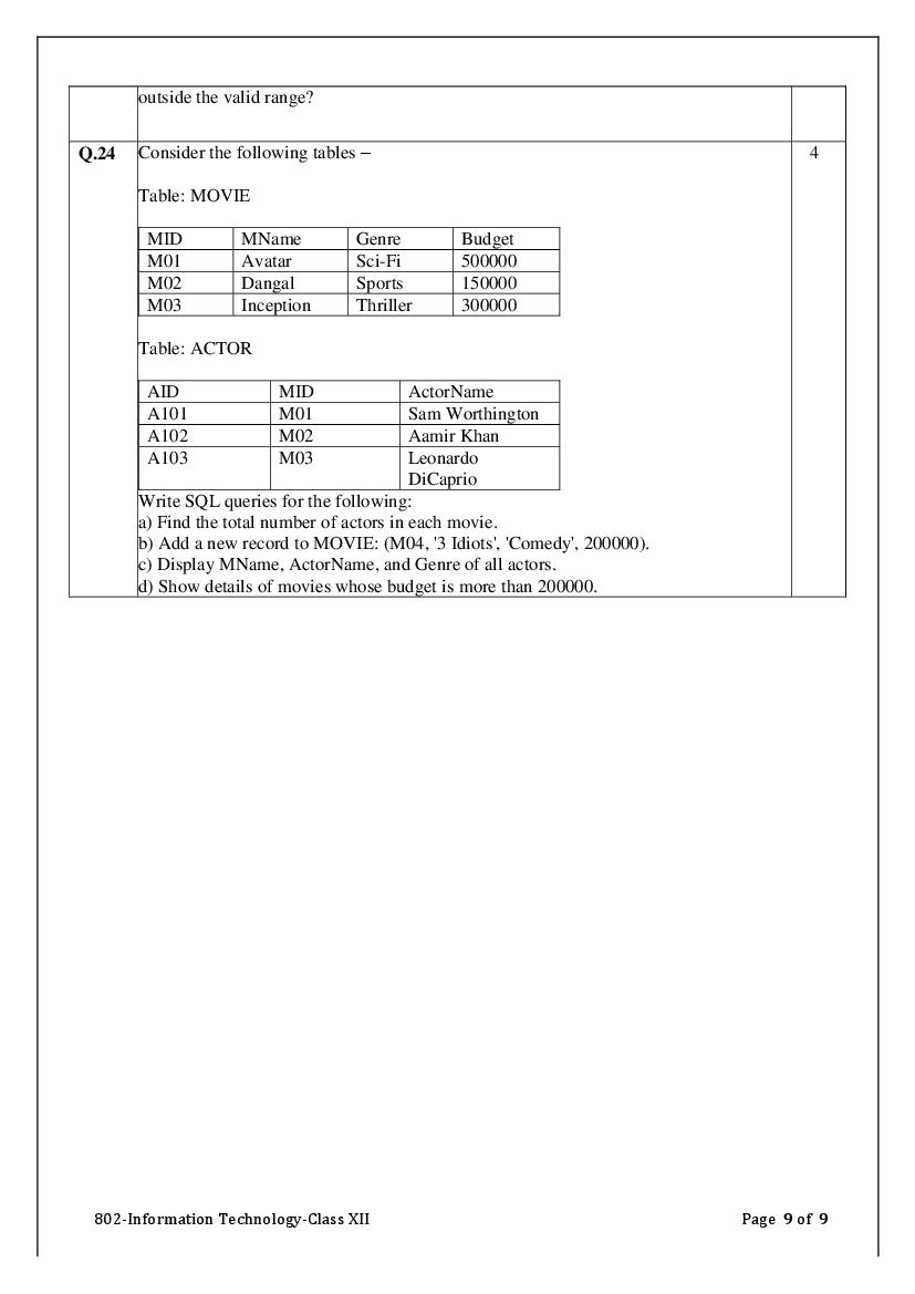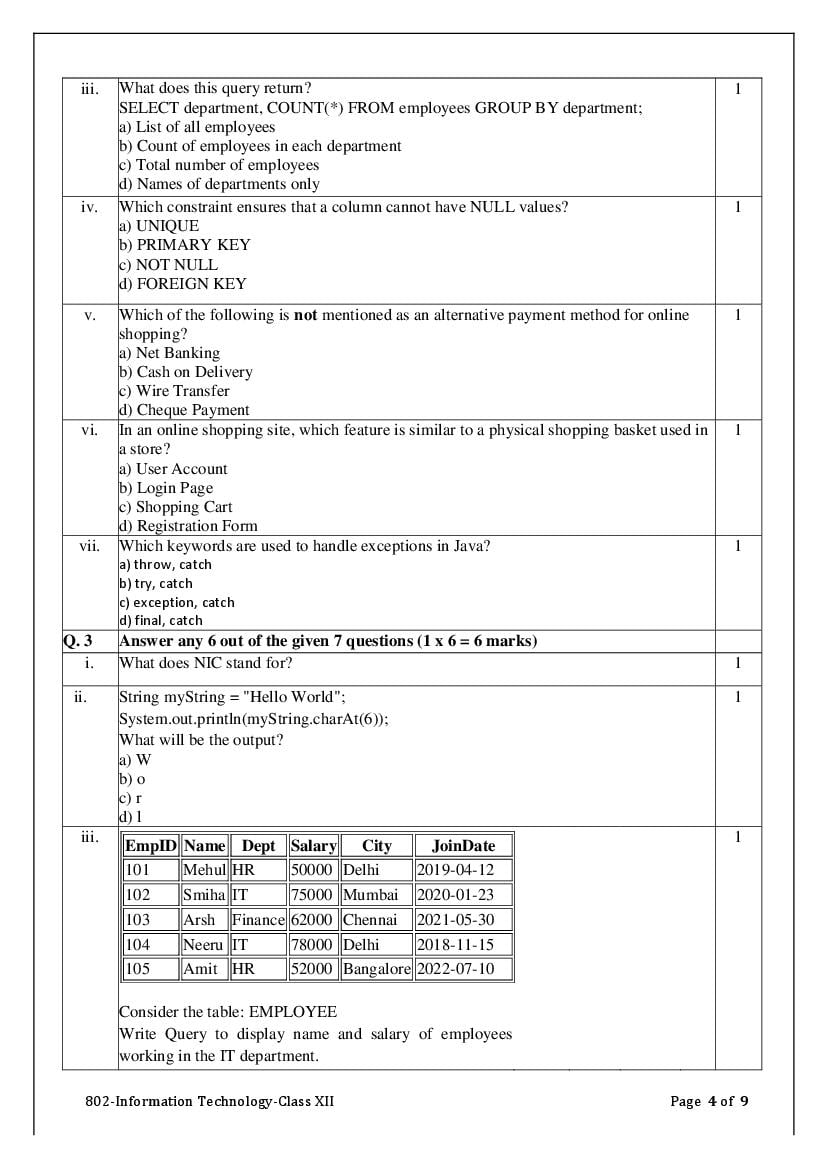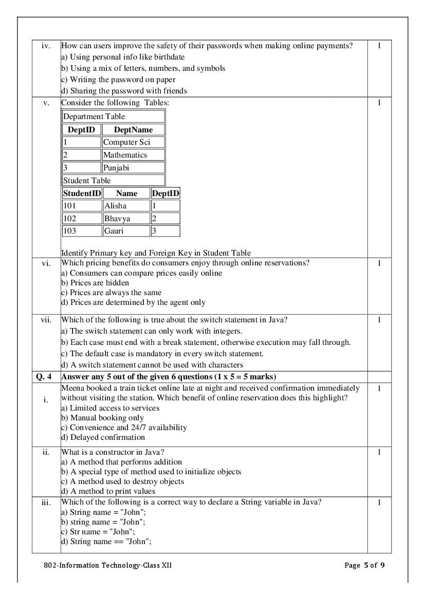 - It is also known as the CBSE sample paper Information Technology class 12 marking scheme as it also conveys how many marks you will get for steps or keywords in the answer.