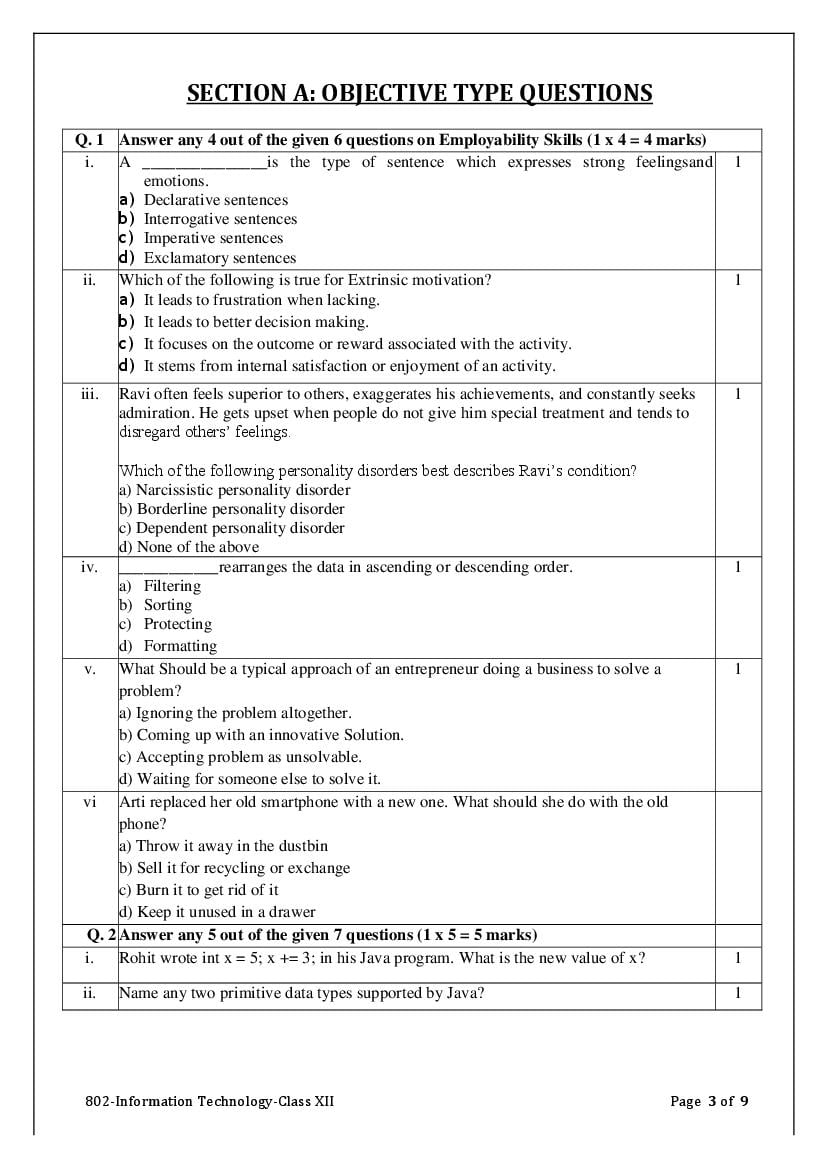 Class 12 Information Technology Sample Paper With Solutions 2026