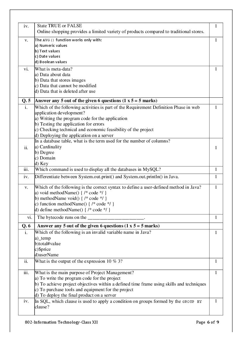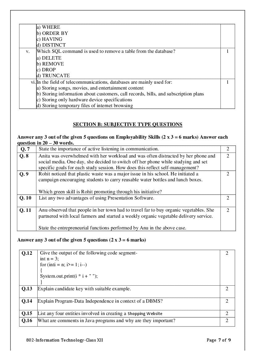 Here on this page you got the Information Technology model question paper. However there are more subjects to study in 12th standard. Therefore here are the subject-wise specimen paper of CBSE for class 12 students.