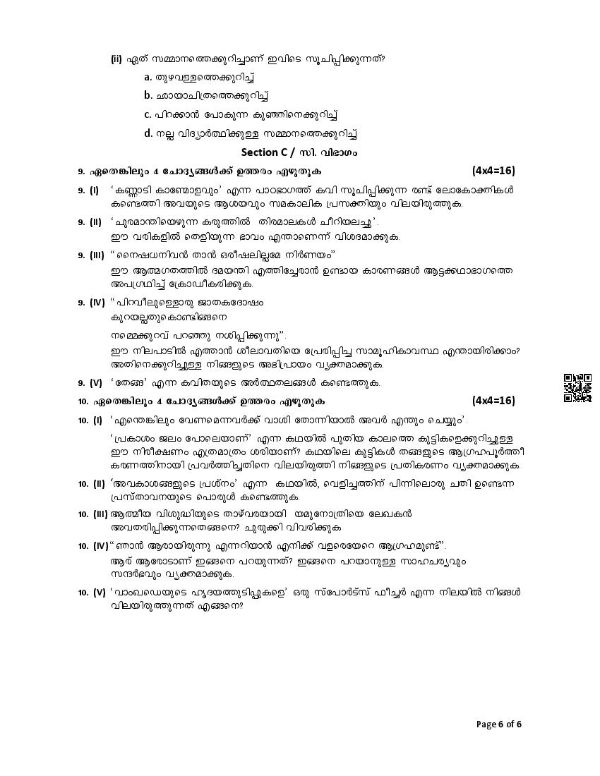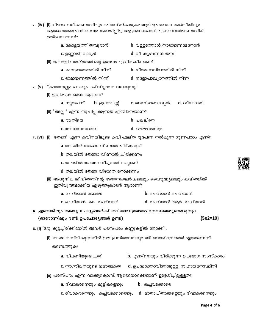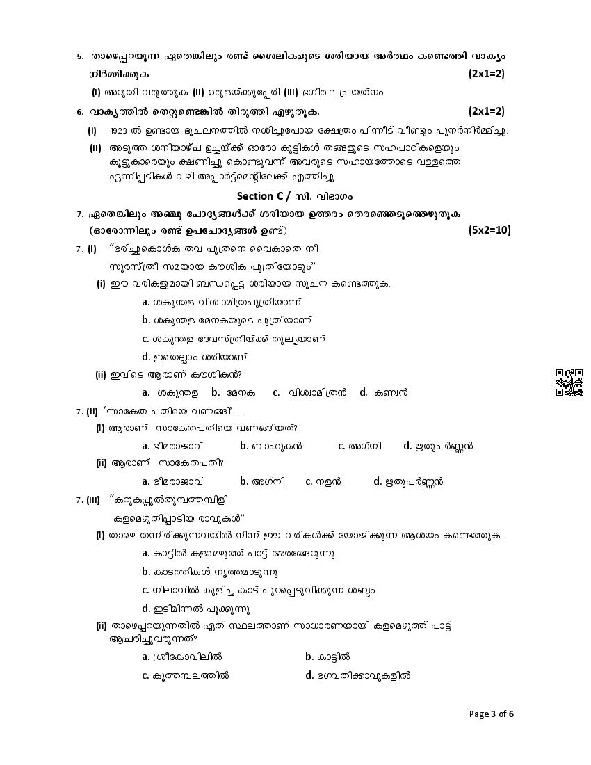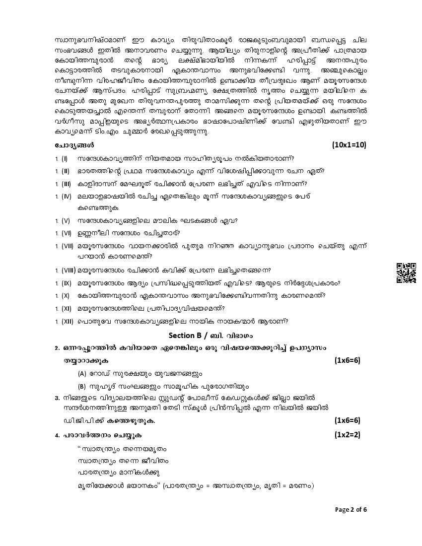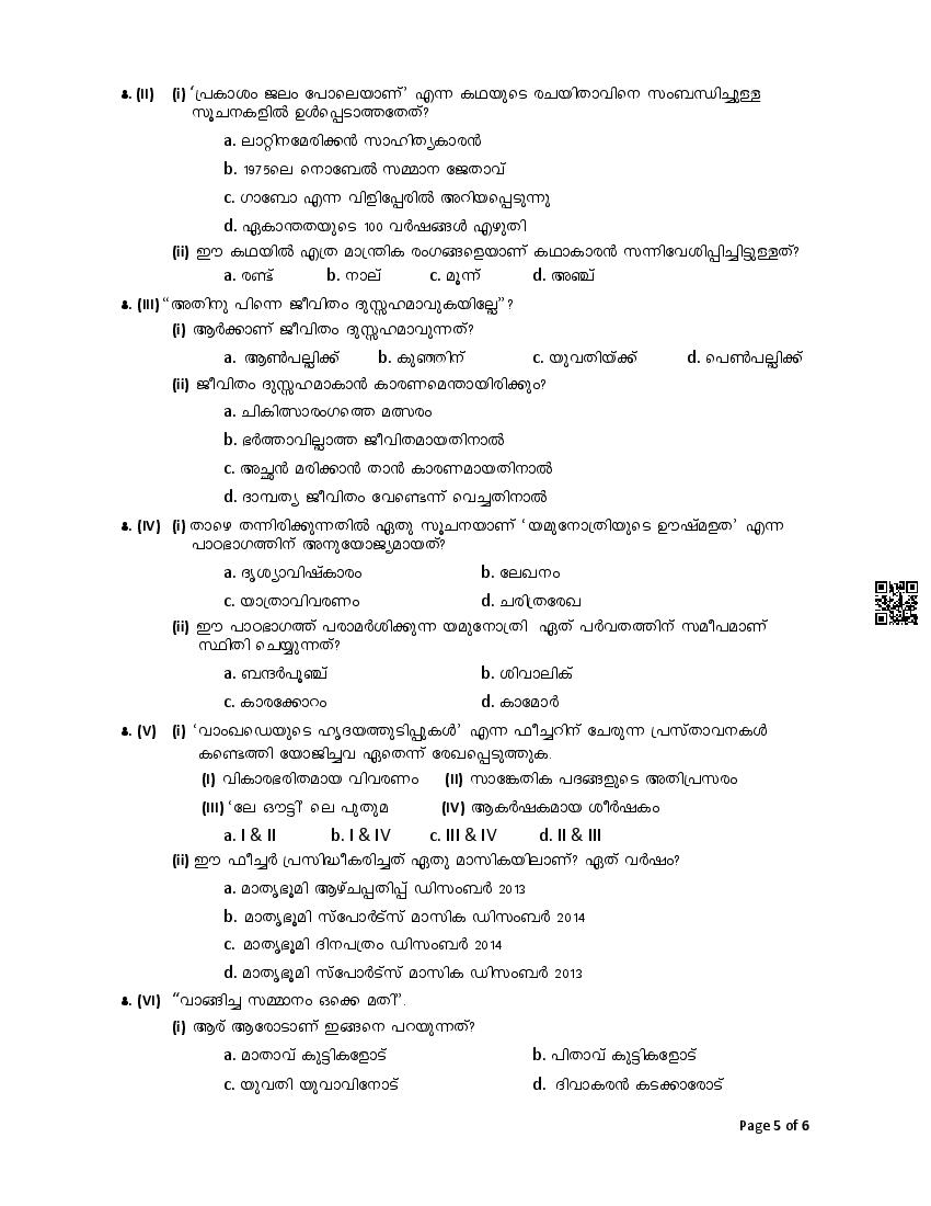 - The class 12 sample paper solutions for Malayalam subject includes the correct answers of all questions asked in the model question paper.