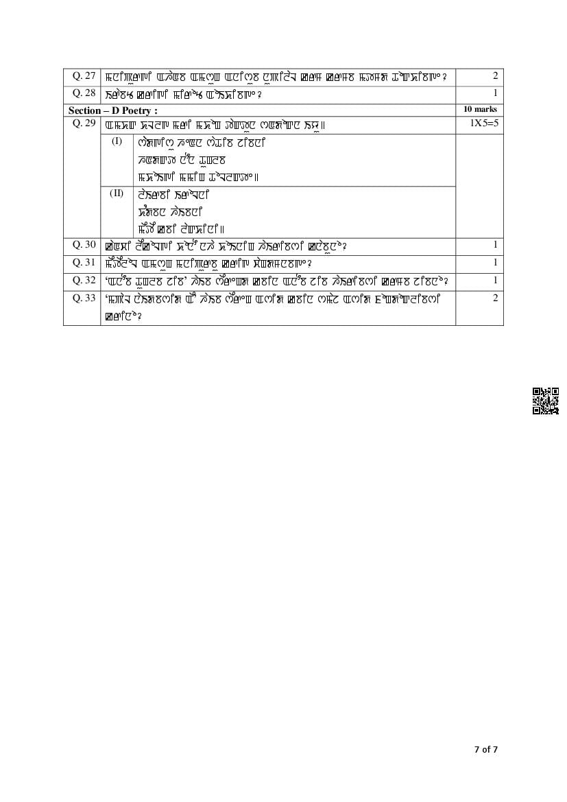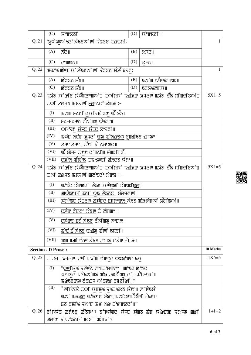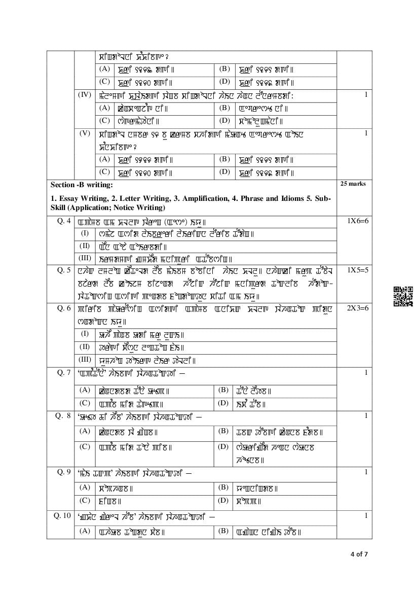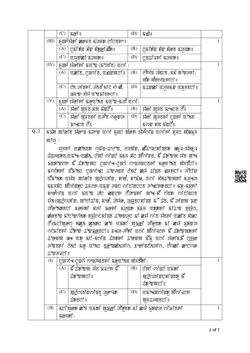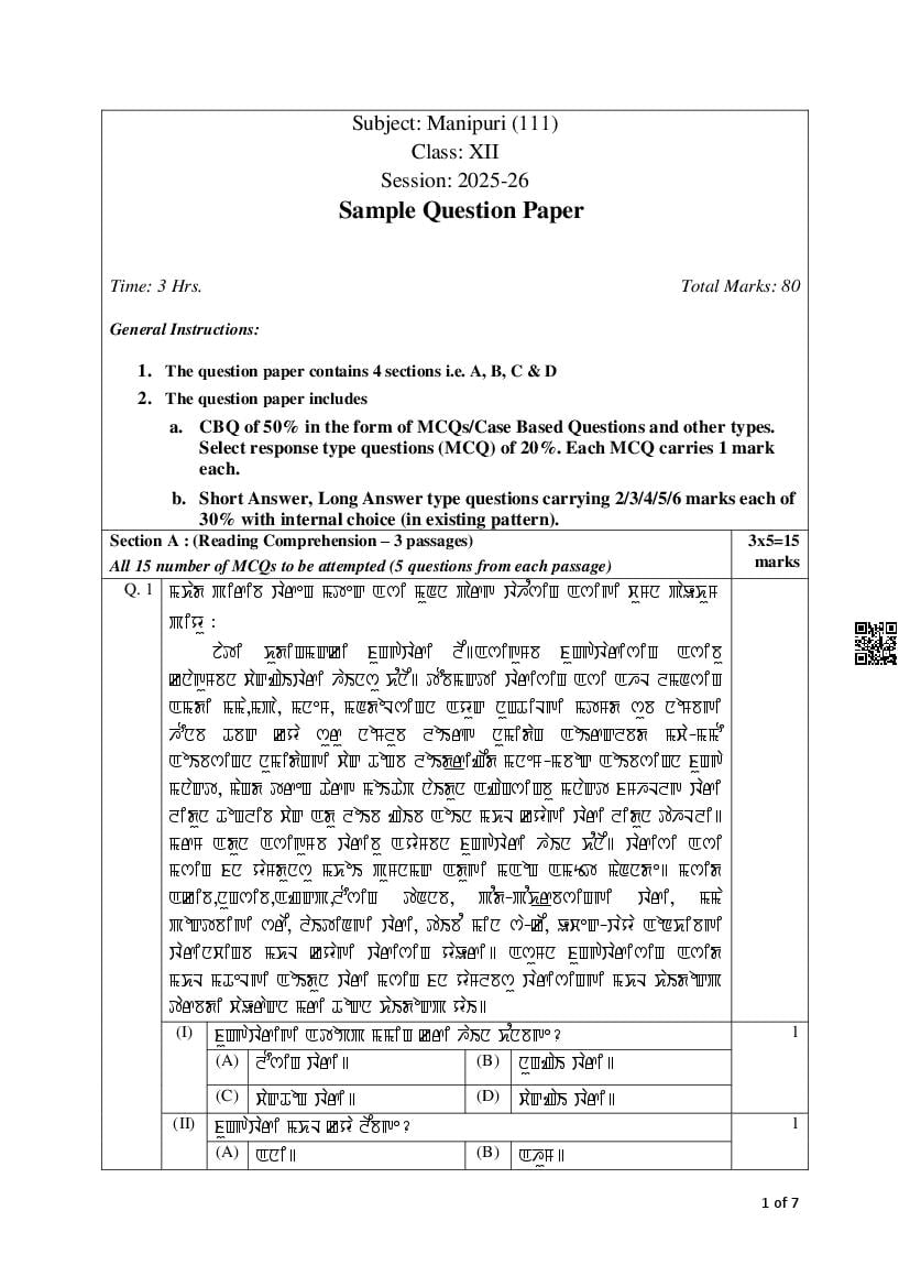 The complete CBSE class 12 Manipuri sample paper 2026 is as follows. However the download link for cbse sample paper Manipuri class 12 marking scheme is given above.