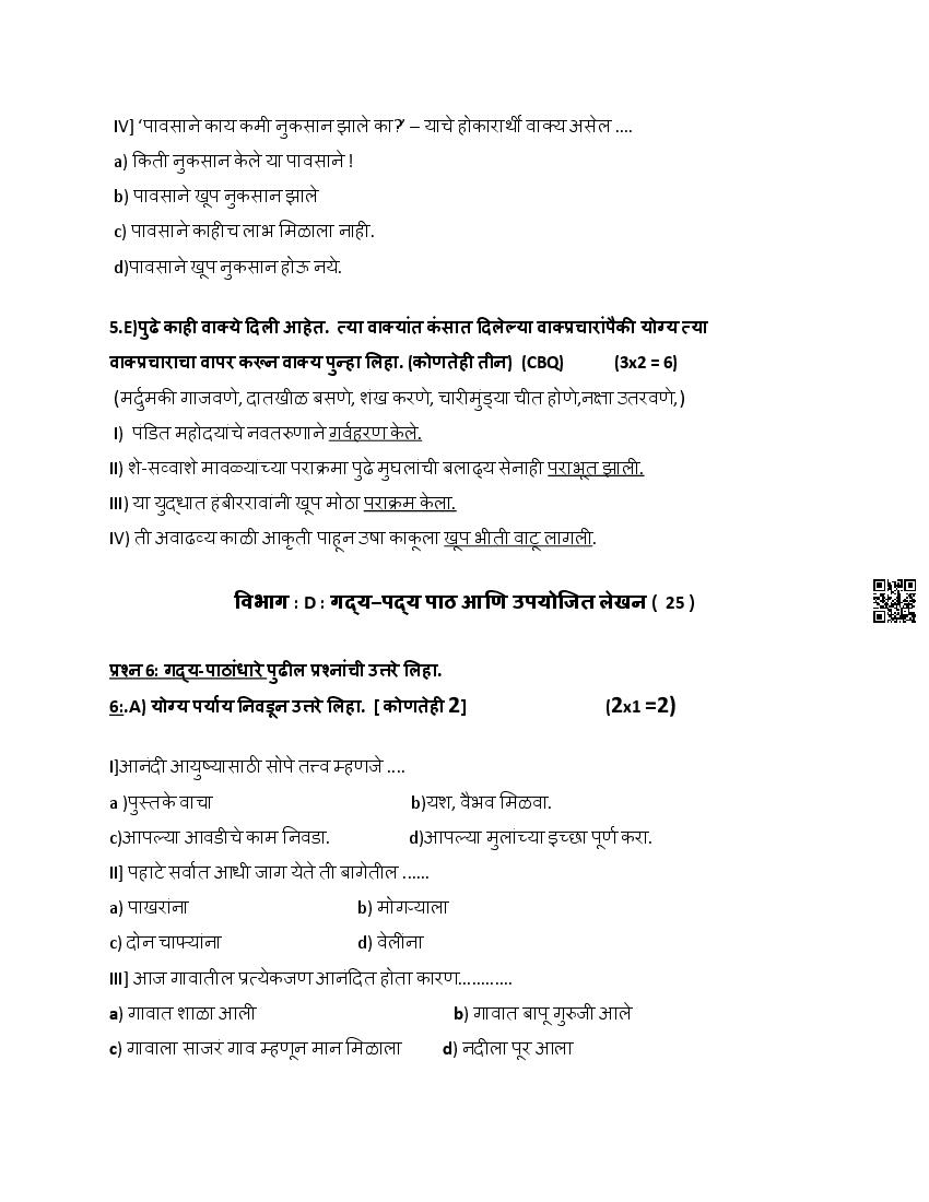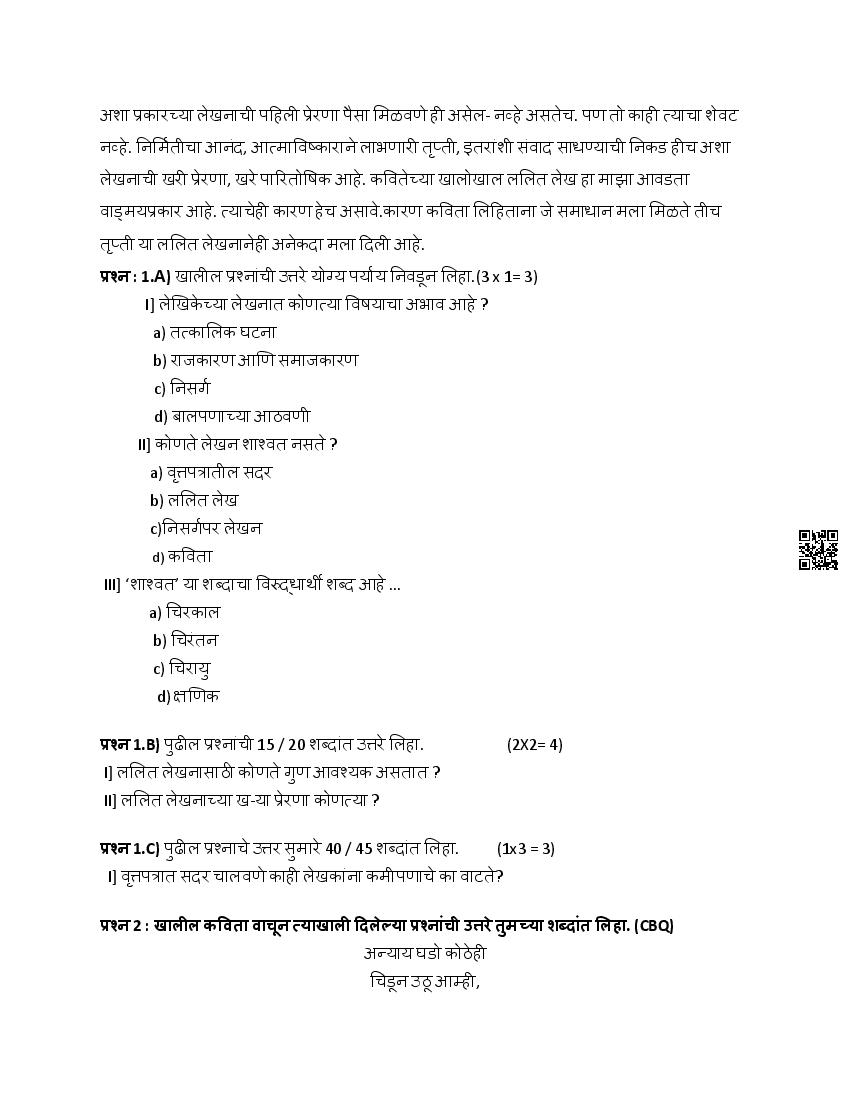 | Subject | Marathi |