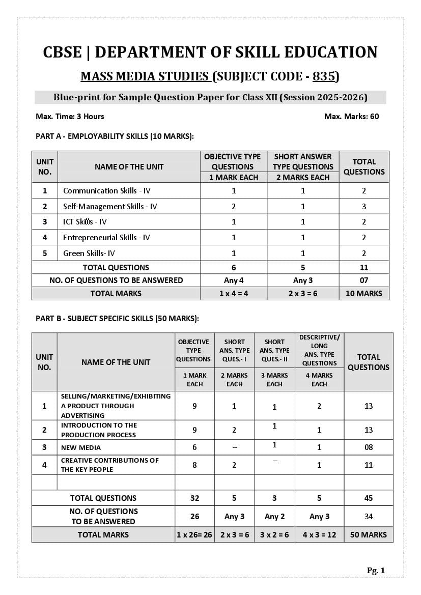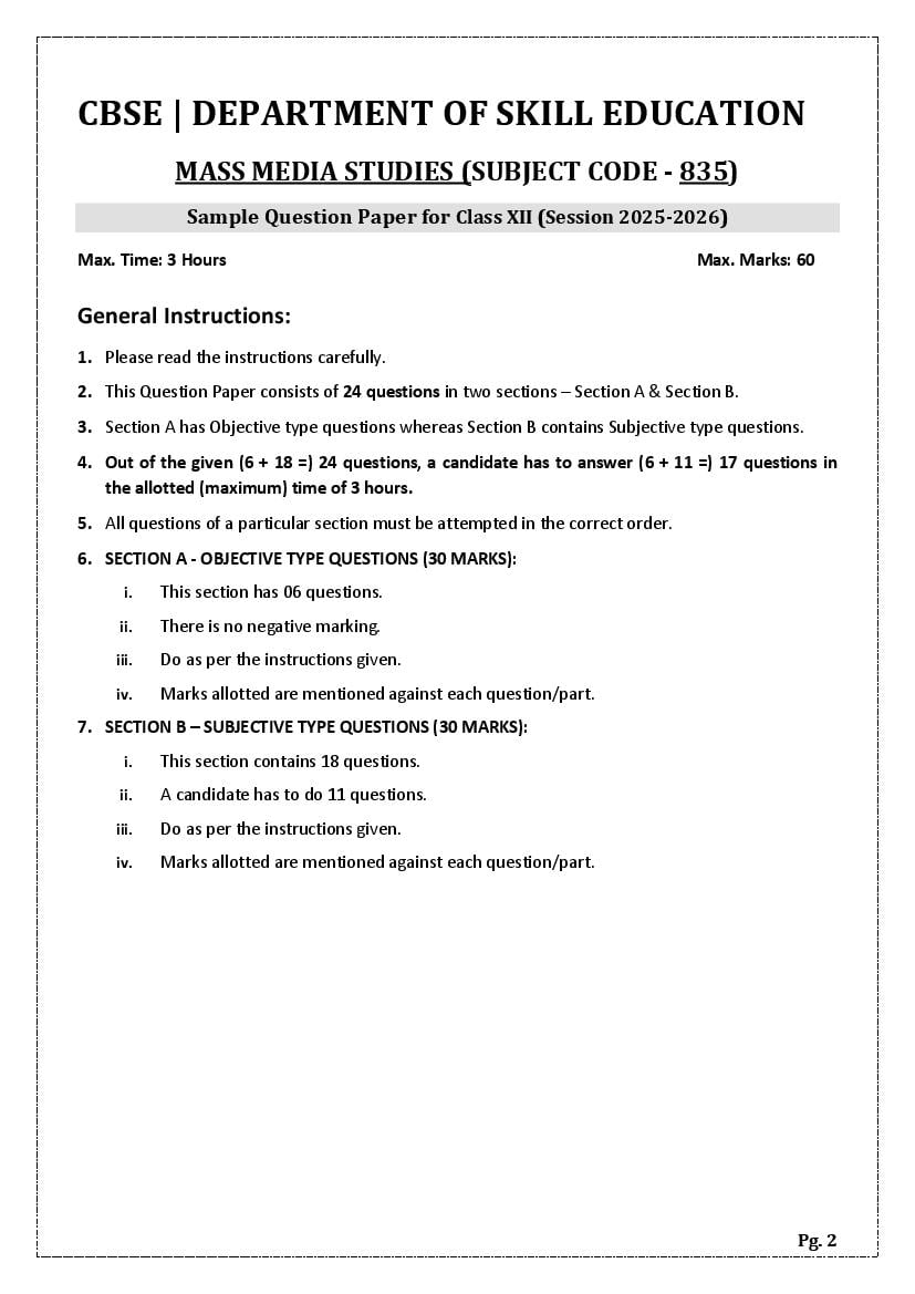 | Study Material Here | CBSE Sample Paper 2026 for Class 12 Mass Media Studies |