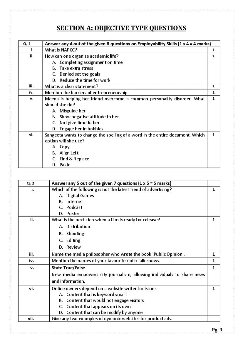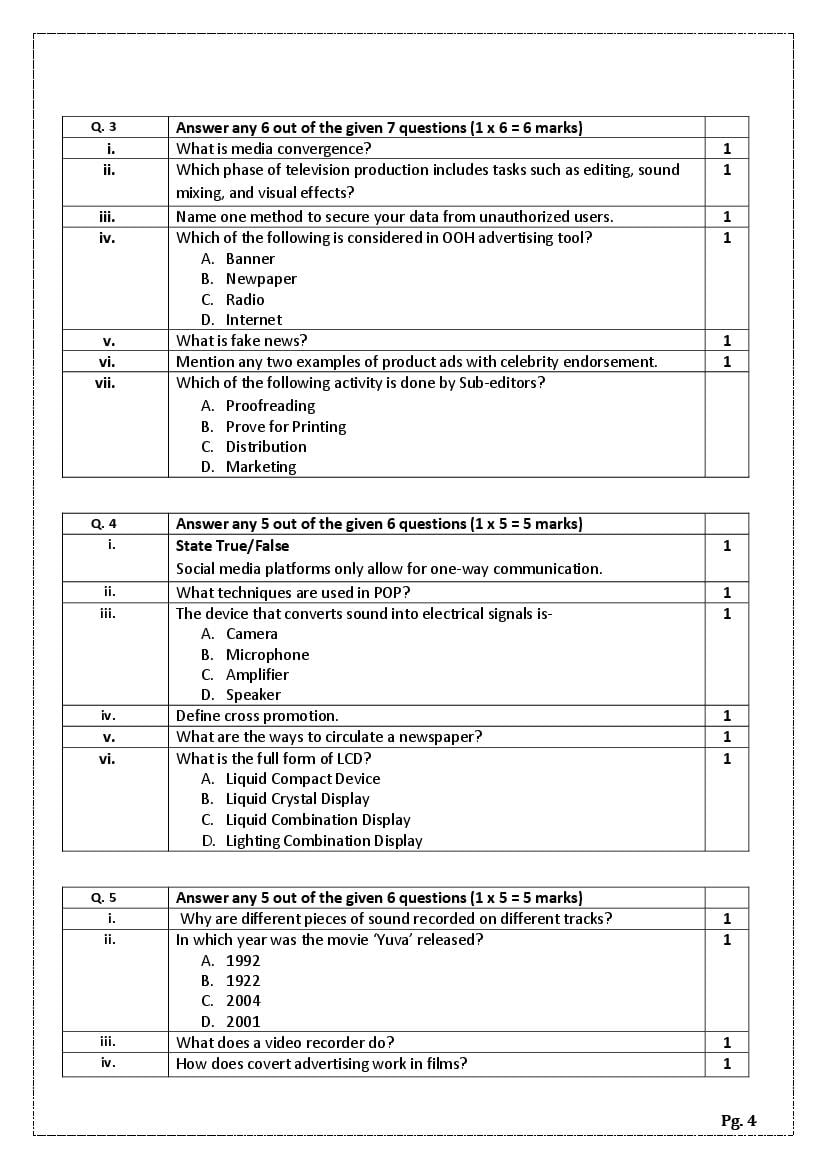 - Therefore you should check the class 12 Mass Media Studies sample question paper solutions to know how to write answers to get full marks in board exams.