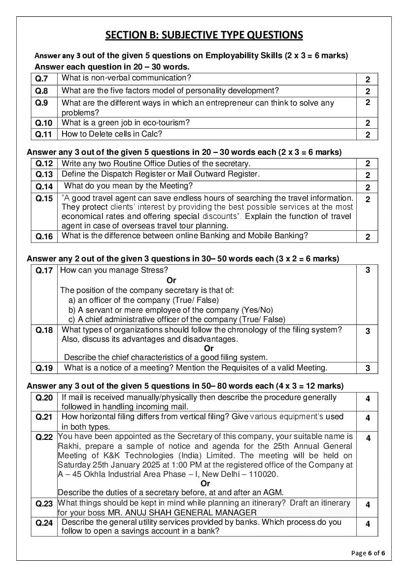 CBSE Class 12 Office Procedures and Practices Sample Paper Solution 2026 PDF Download Link – Click Here to Download Solutions / Marking Scheme