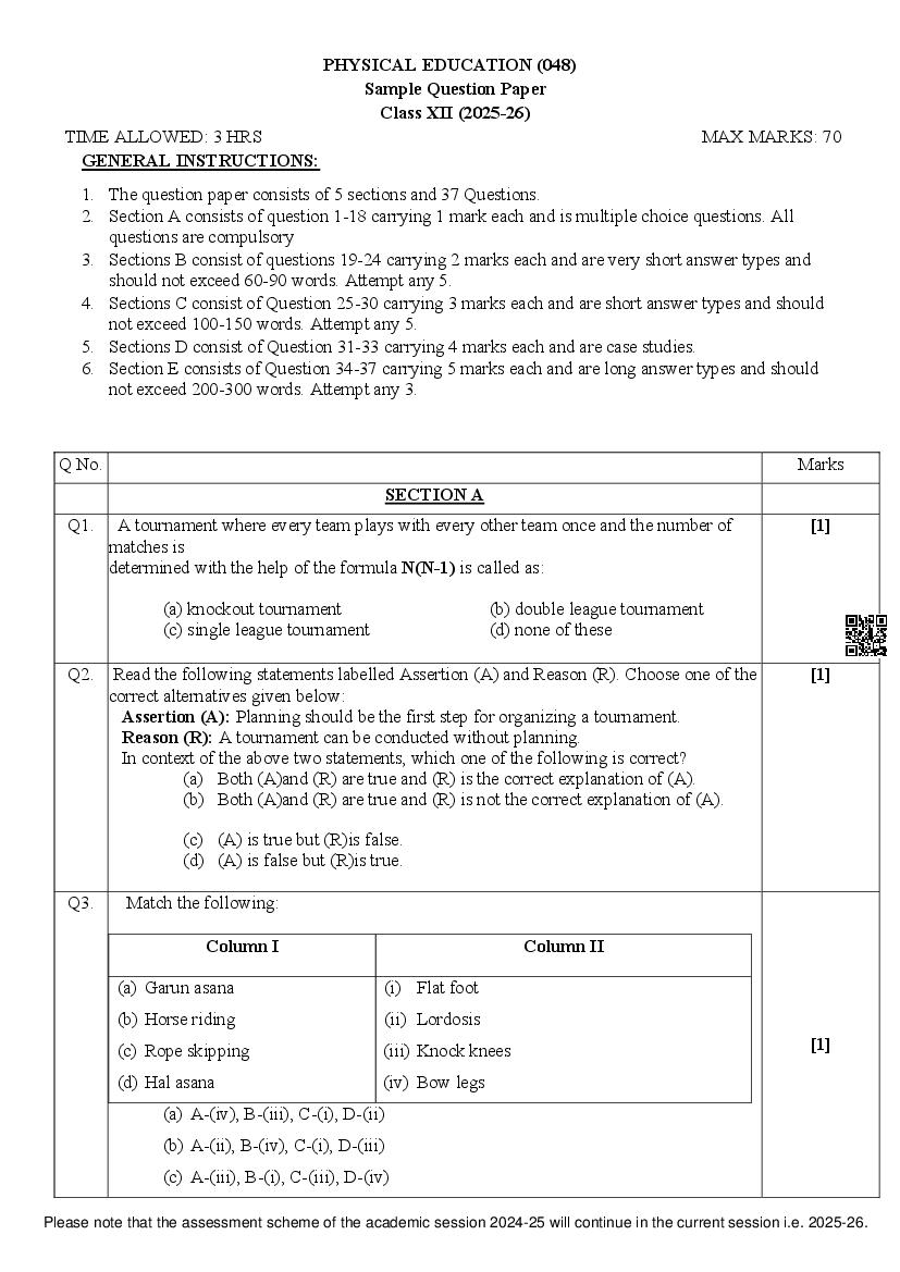 | Study Material Here | CBSE Sample Paper 2026 for Class 12 Physical Education |
