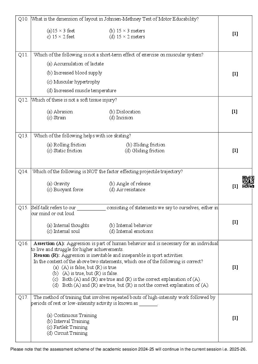 The complete CBSE class 12 Physical Education sample paper 2026 is as follows. However the download link for cbse sample paper Physical Education class 12 marking scheme is given above.