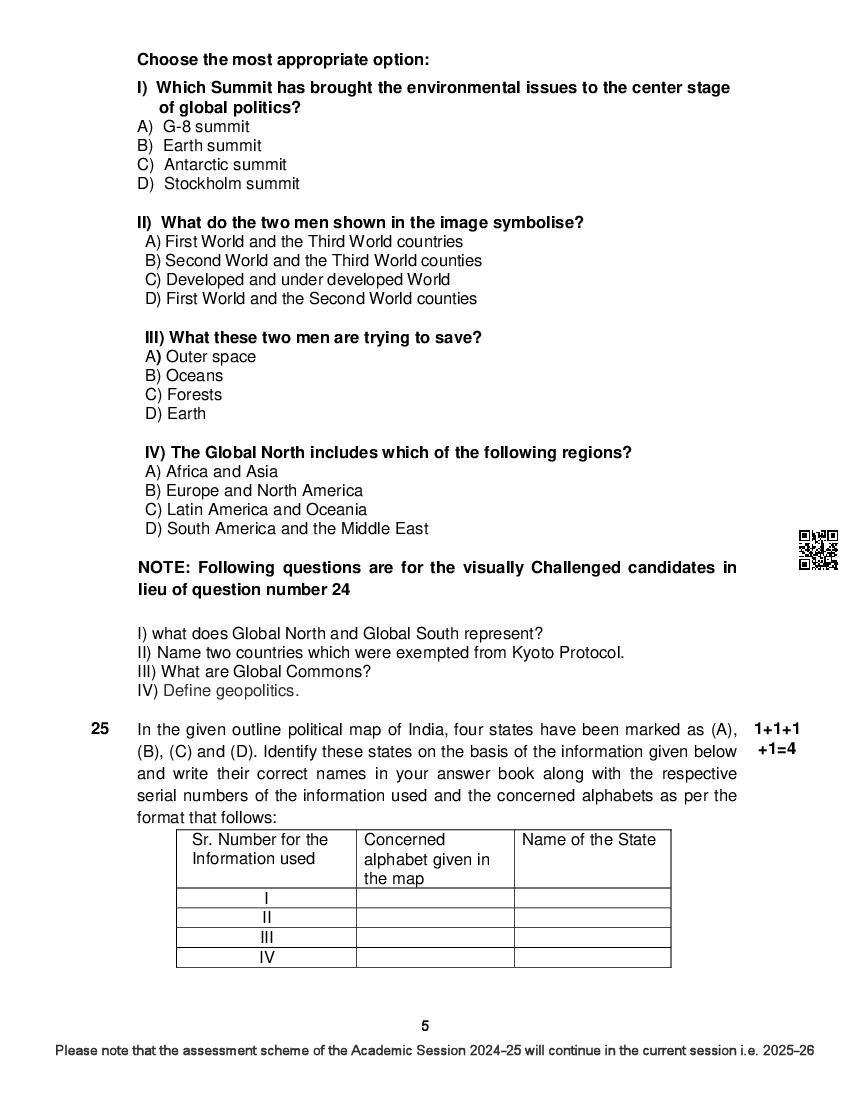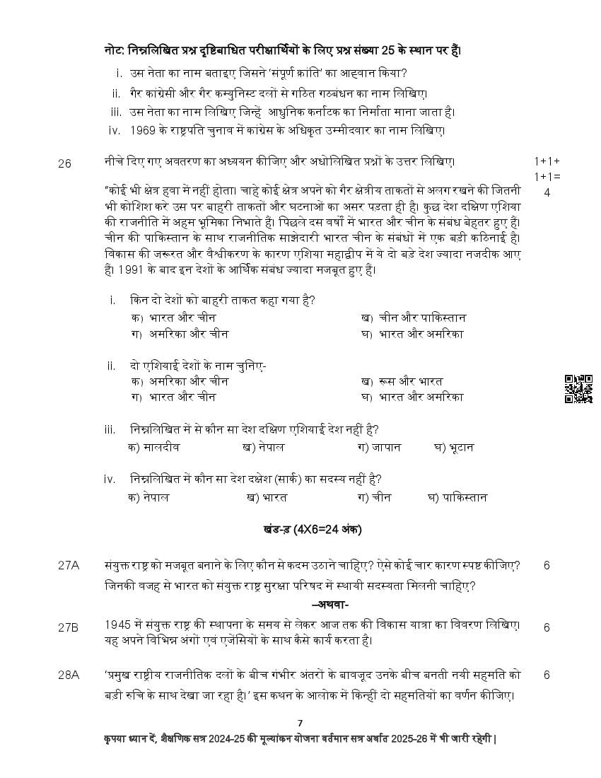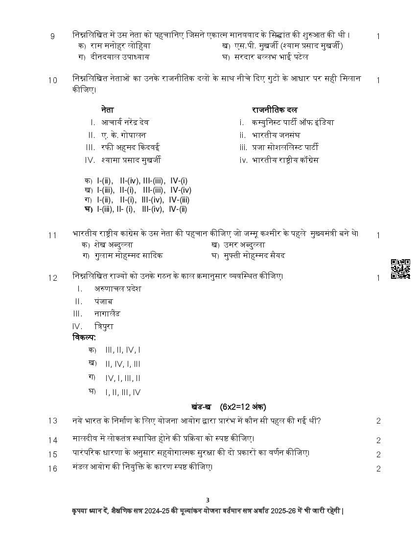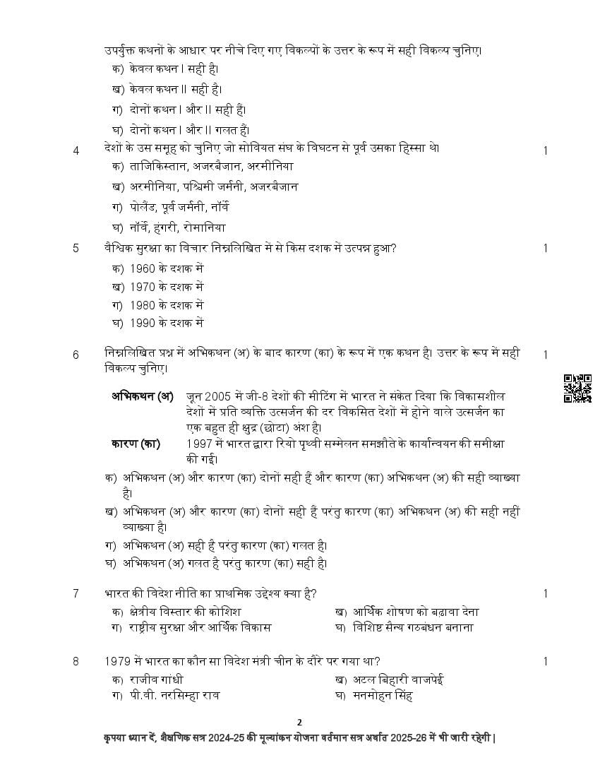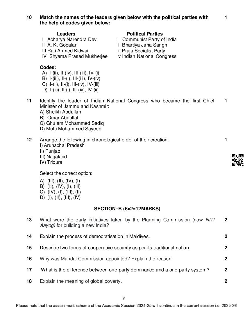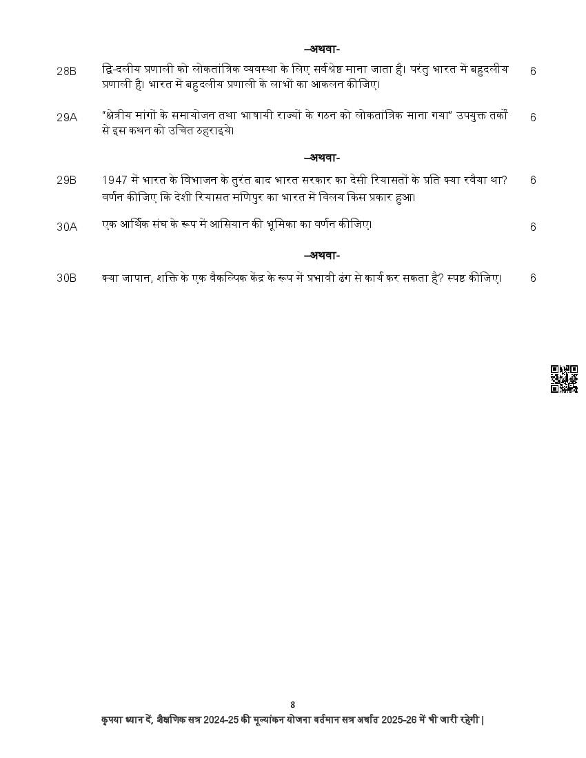 The complete CBSE class 12 Political Science sample paper 2026 is as follows. However the download link for cbse sample paper Political Science class 12 marking scheme is given above.