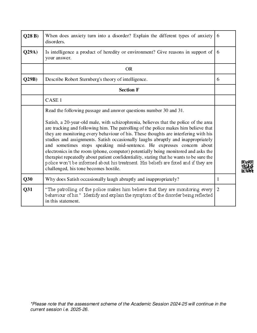 | Study Material Here | CBSE Sample Paper 2026 for Class 12 Psychology |
