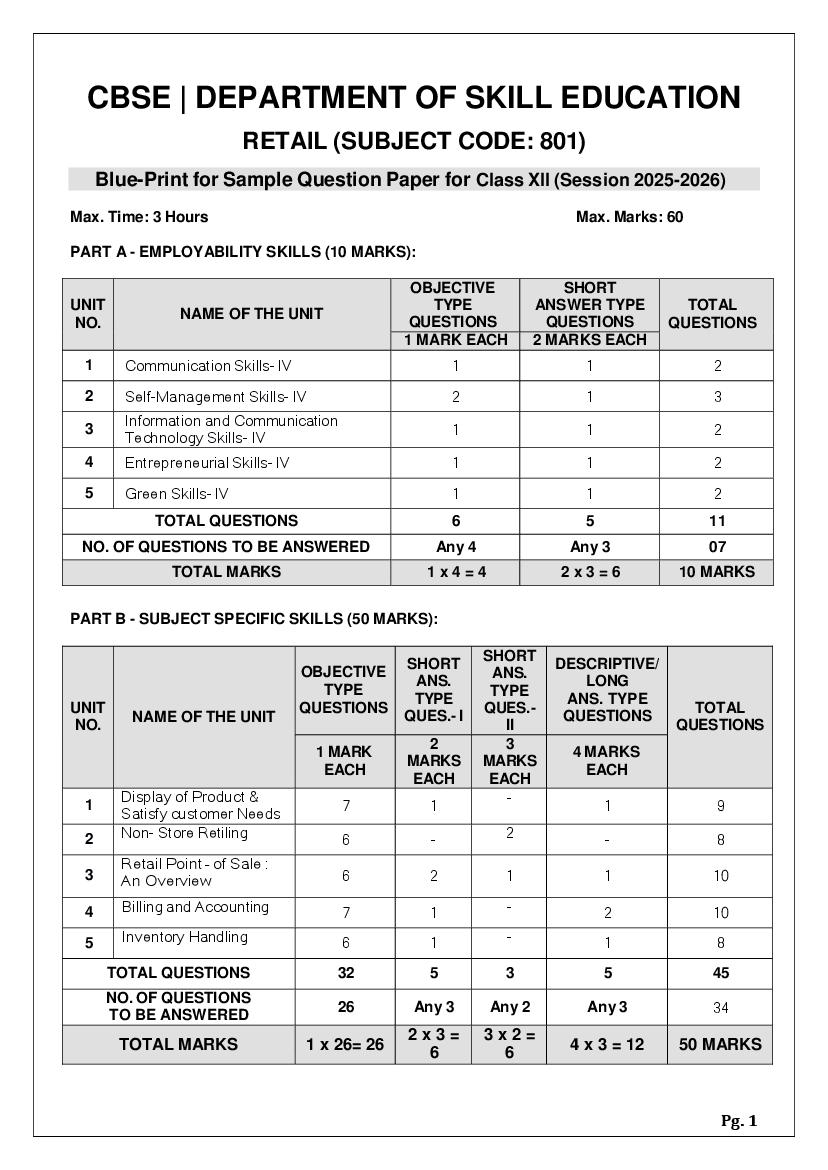 | Study Material Here | CBSE Sample Paper 2026 for Class 12 Retail |
