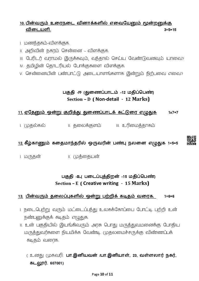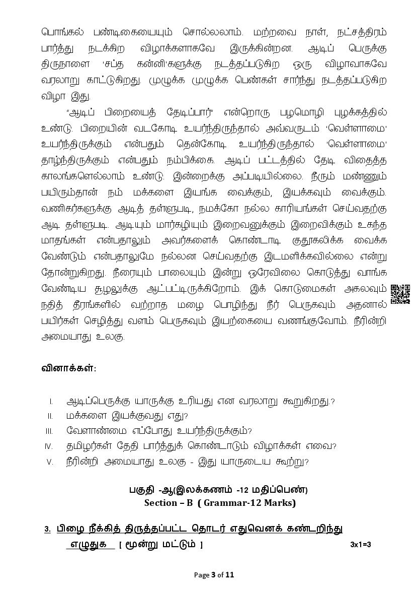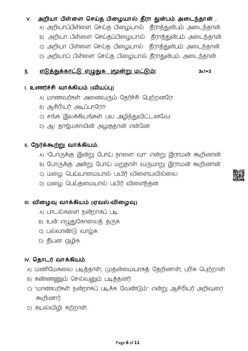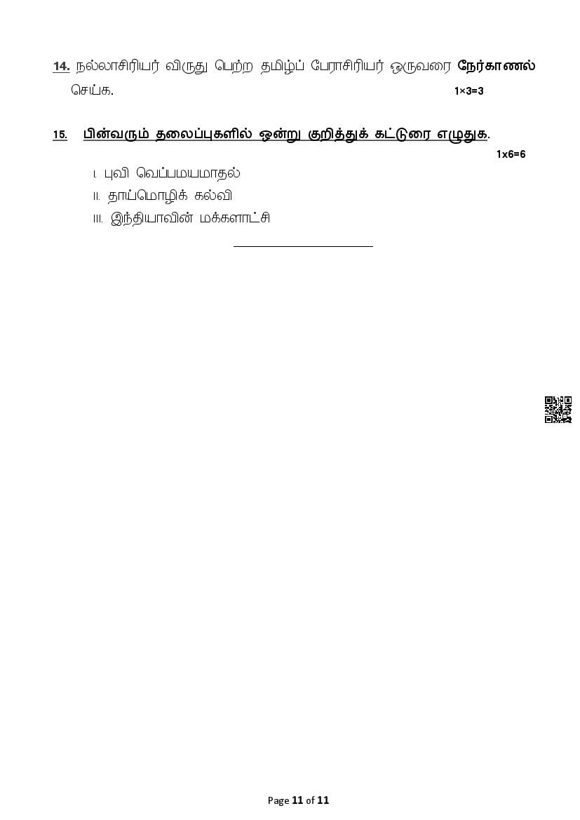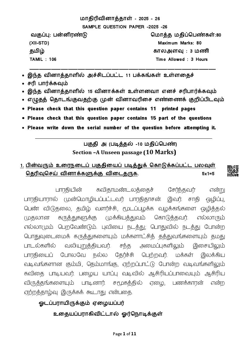 The complete CBSE class 12 Tamil sample paper 2026 is as follows. However the download link for cbse sample paper Tamil class 12 marking scheme is given above.