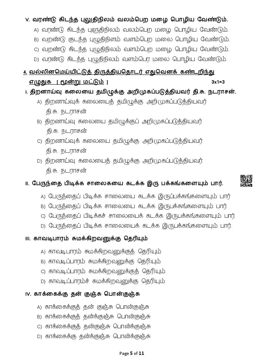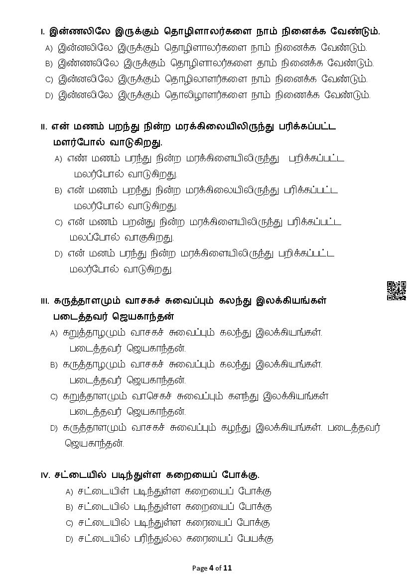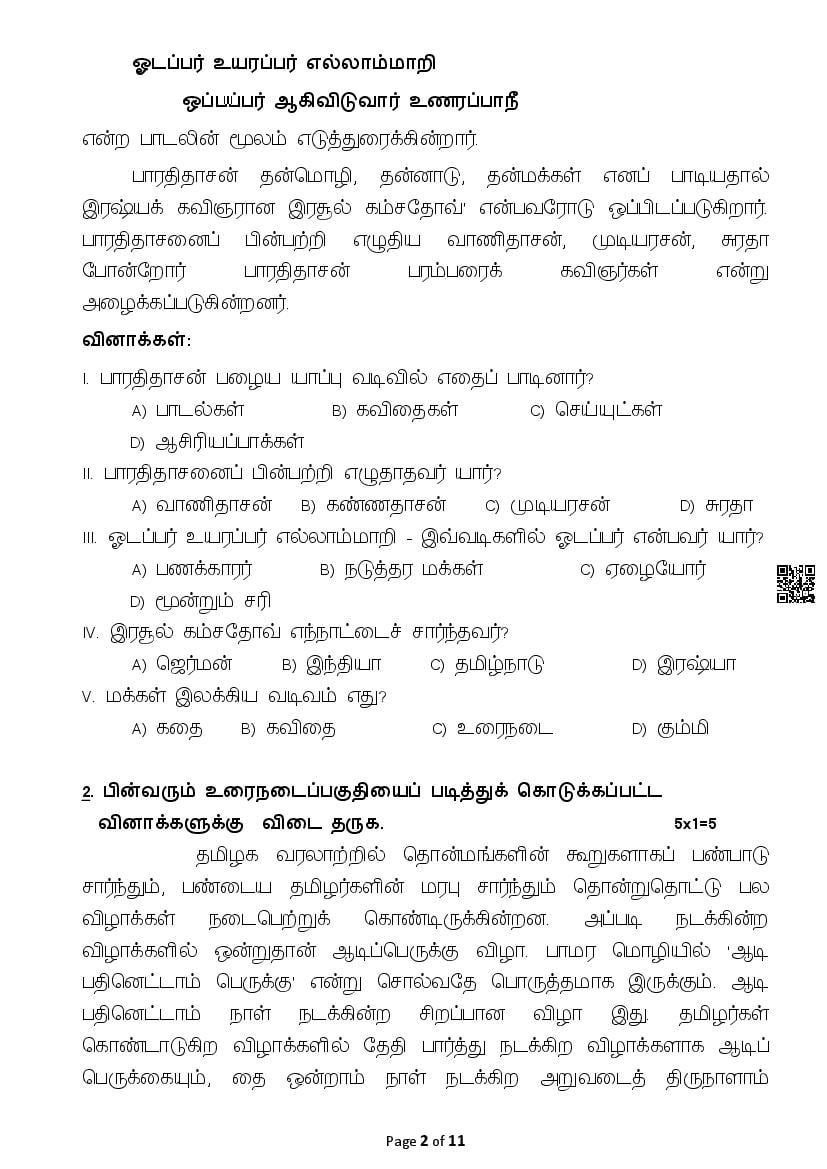 - The class 12 sample paper solutions for Tamil subject includes the correct answers of all questions asked in the model question paper.