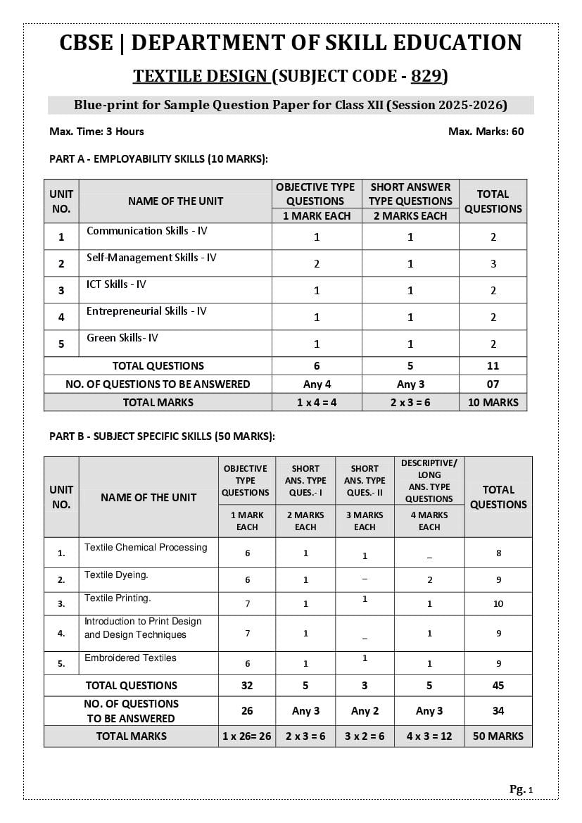 - You should study all topics given in CBSE Class 12 Textile Design Syllabus 2026.
