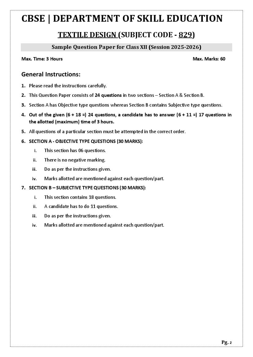 The complete CBSE class 12 Textile Design sample paper 2026 is as follows. However the download link for cbse sample paper Textile Design class 12 marking scheme is given above.