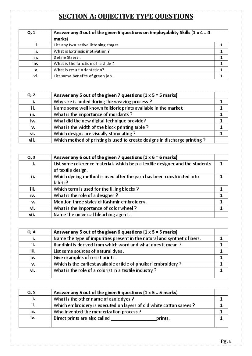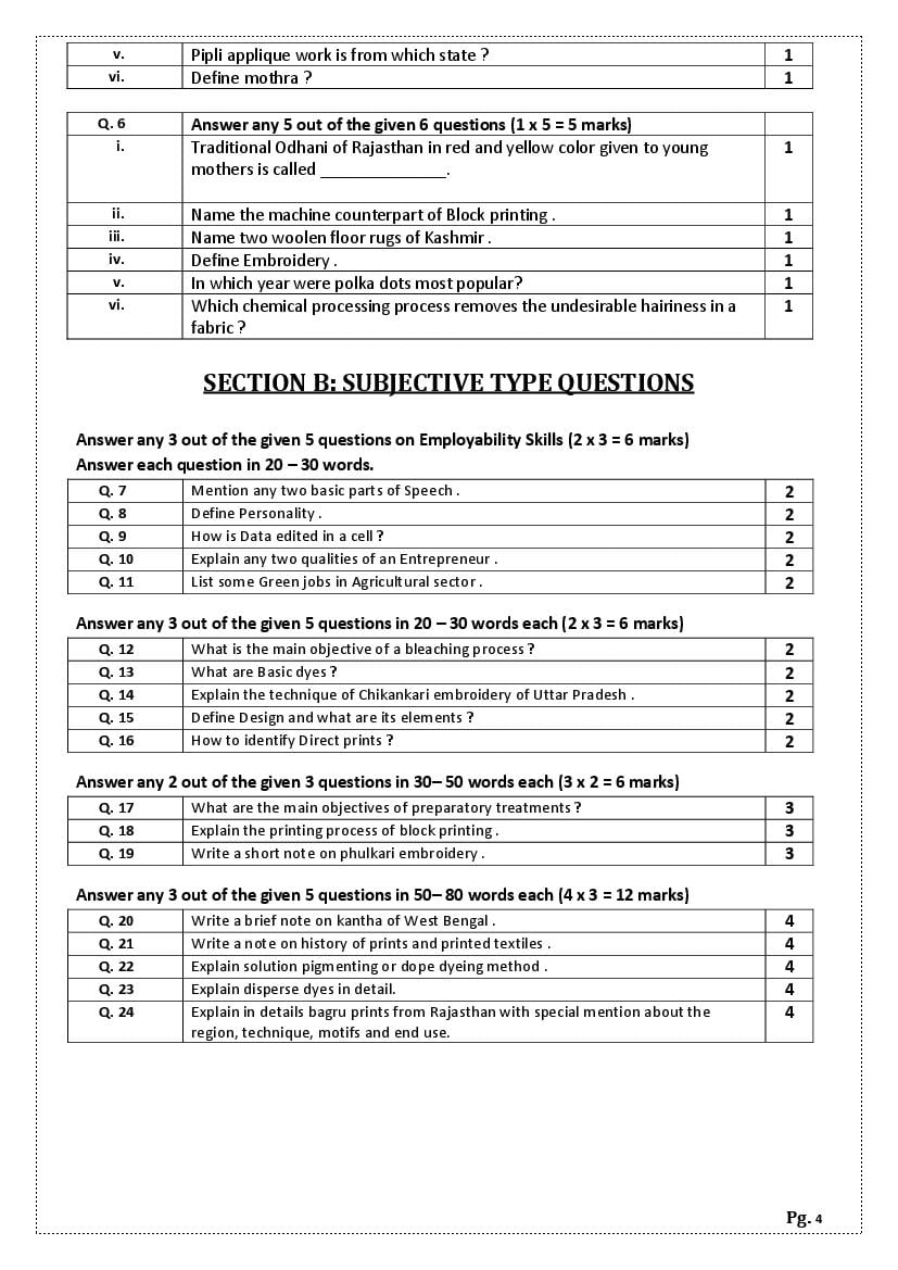 Class 12 Textile Design Sample Paper With Solutions 2026