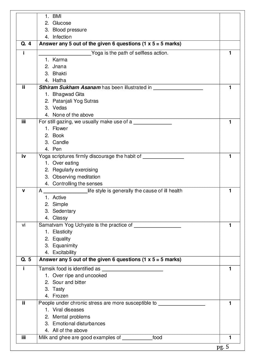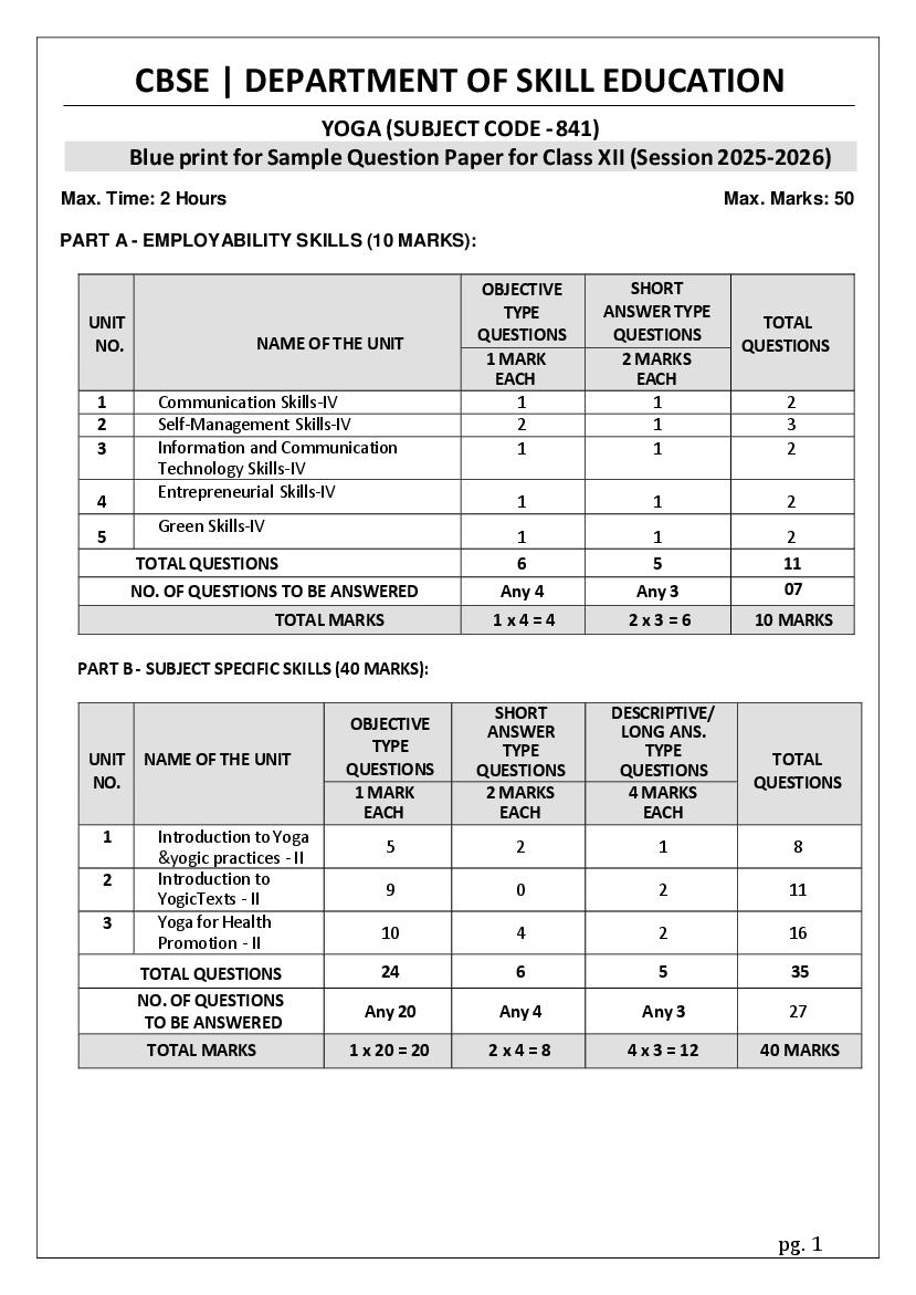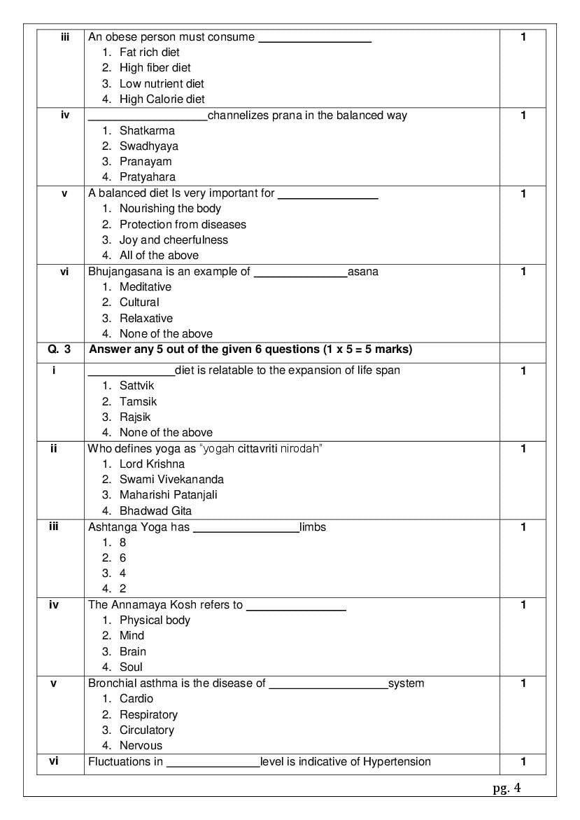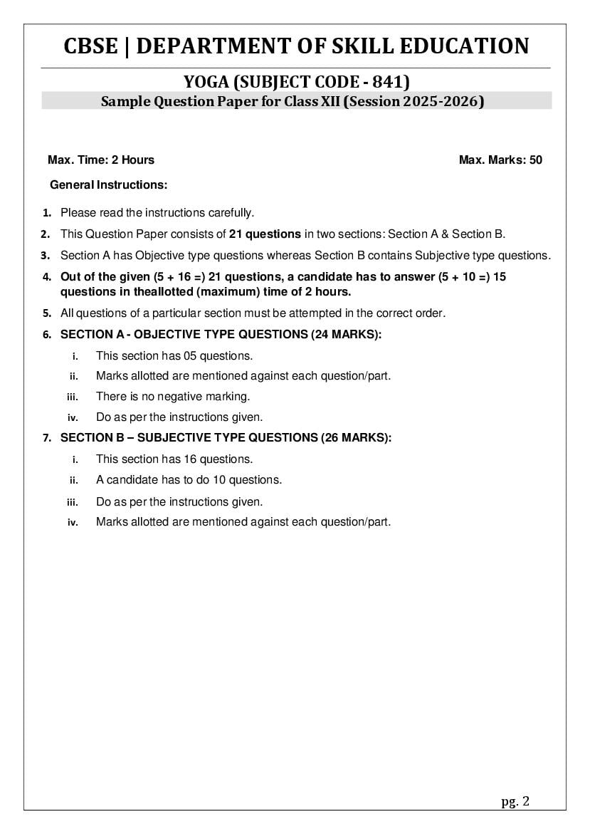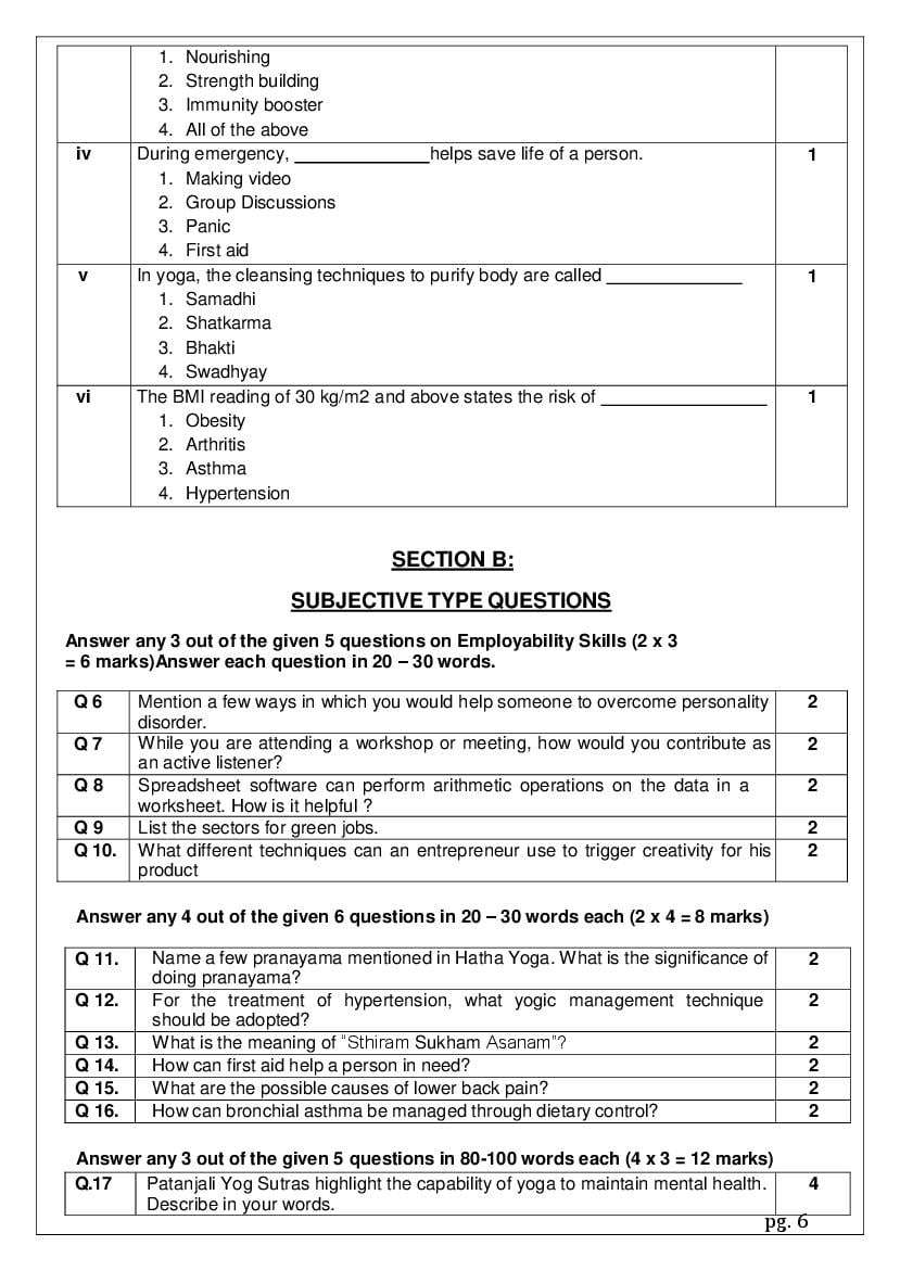 The complete CBSE class 12 Yoga sample paper 2026 is as follows. However the download link for cbse sample paper Yoga class 12 marking scheme is given above.