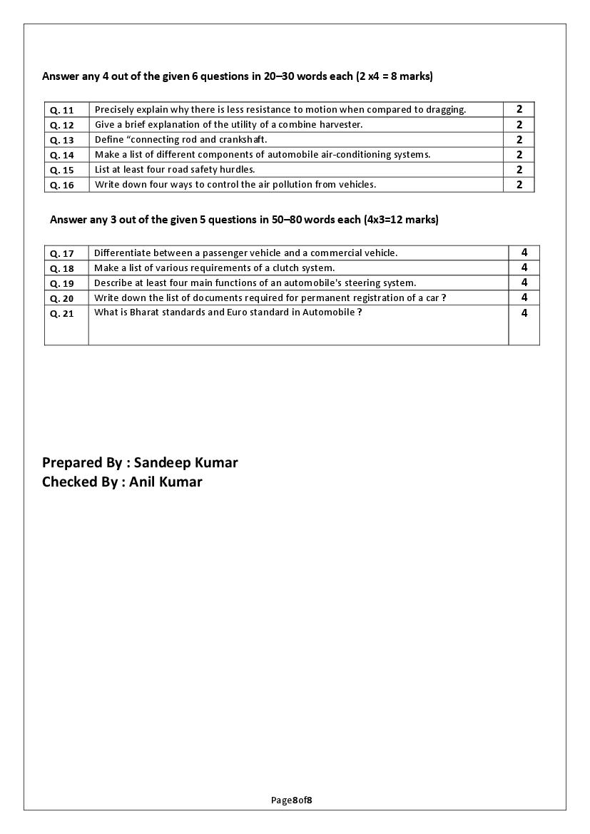 - Therefore you should check the class 9 Automotive sample question paper solutions to know how to write answers to get full marks in board exams.