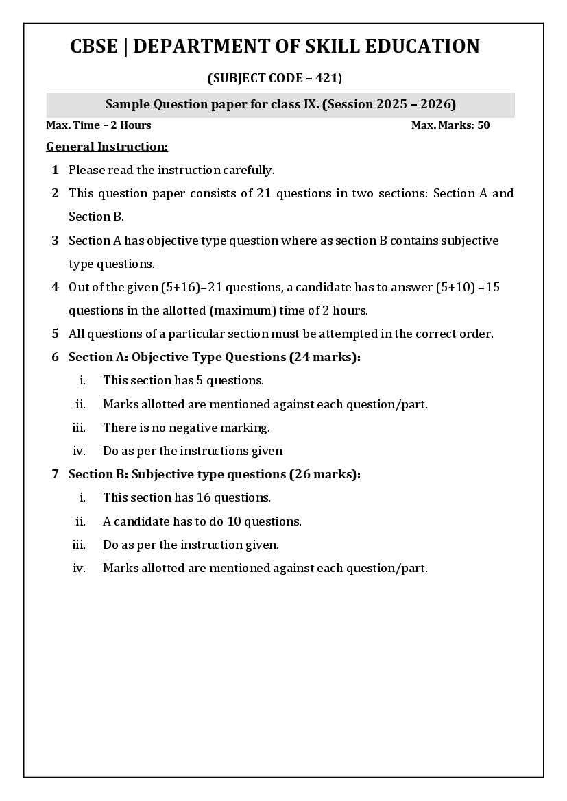 | Study Material Here | CBSE Sample Paper 2026 for Class 9 Foundation Skills for Sciences |