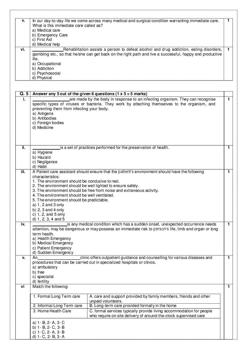 The complete CBSE class 9 Health Care sample paper 2026 is as follows. However the download link for cbse sample paper Health Care class 9 marking scheme is given above.