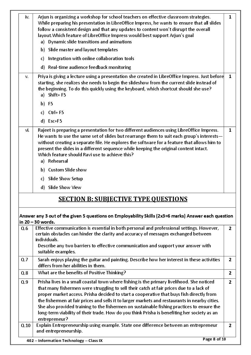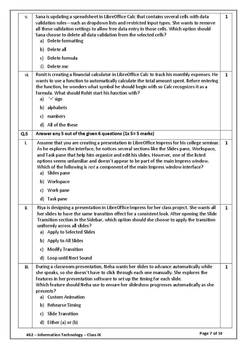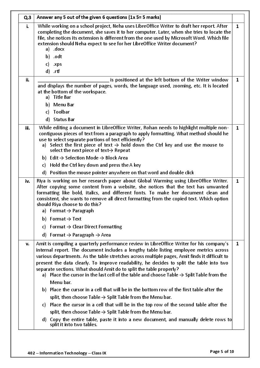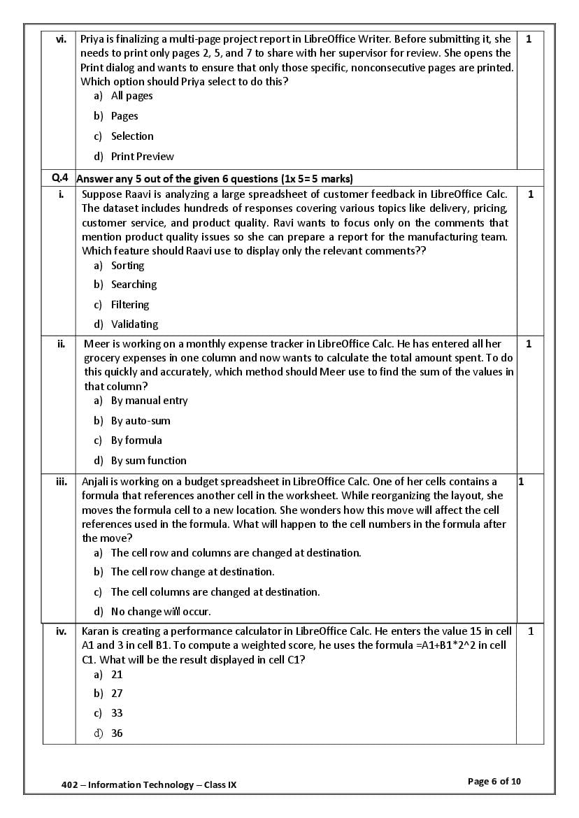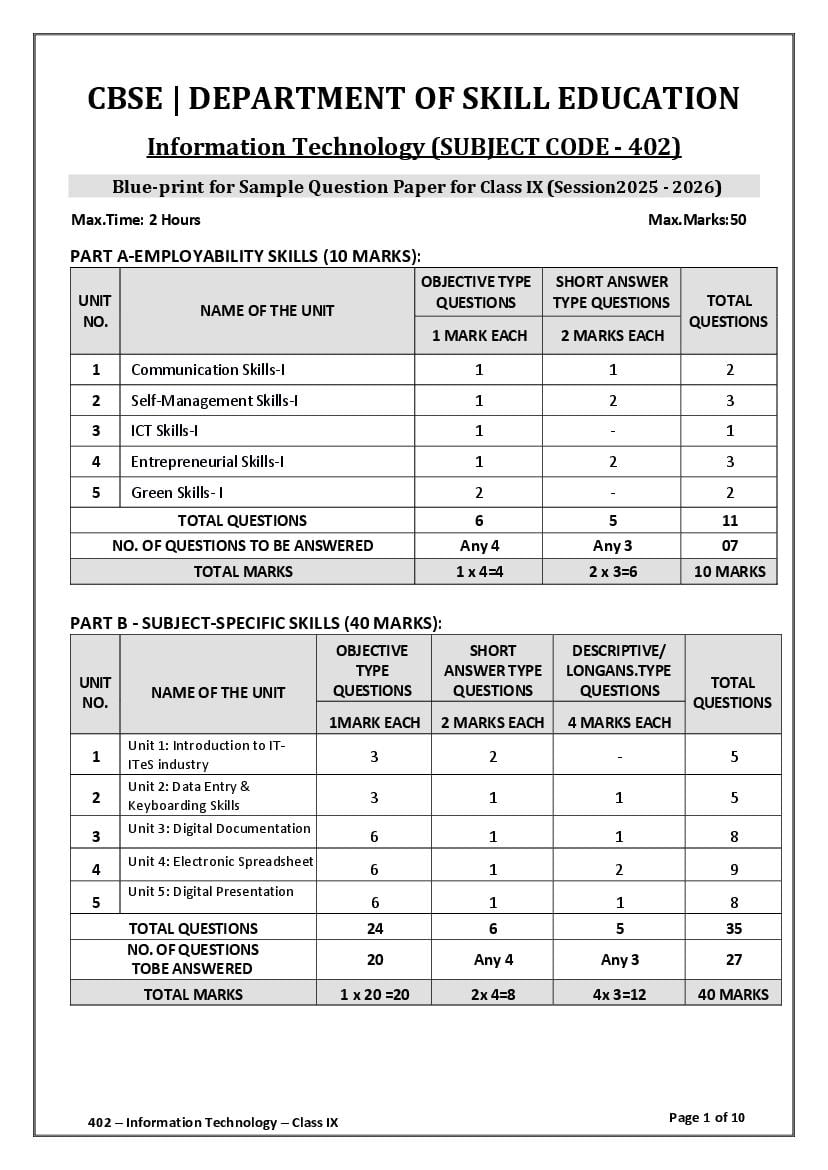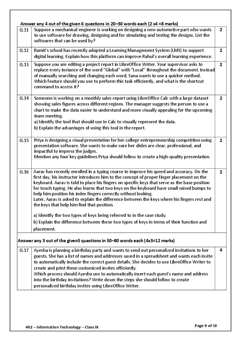 The complete CBSE class 9 Information Technology sample paper 2026 is as follows. However the download link for cbse sample paper Information Technology class 9 marking scheme is given above.