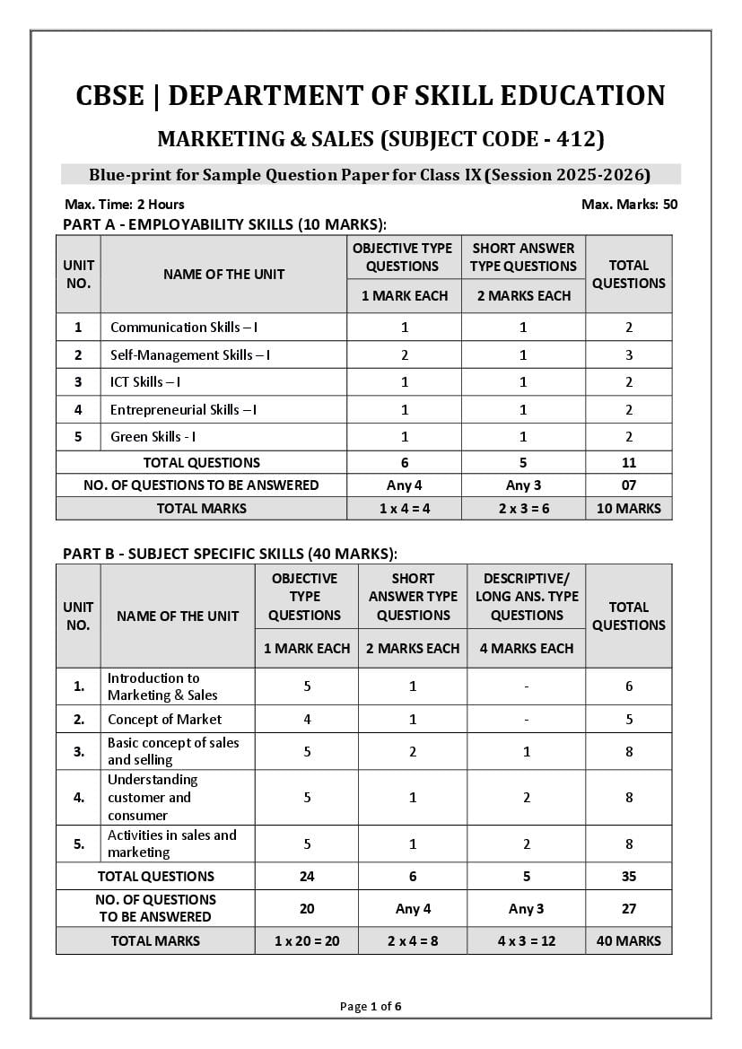 - You should study all topics given in CBSE Class 9 Marketing and Sales Syllabus 2026.