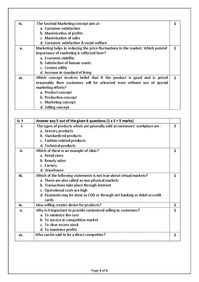The complete CBSE class 9 Marketing and Sales sample paper 2026 is as follows. However the download link for cbse sample paper Marketing and Sales class 9 marking scheme is given above.