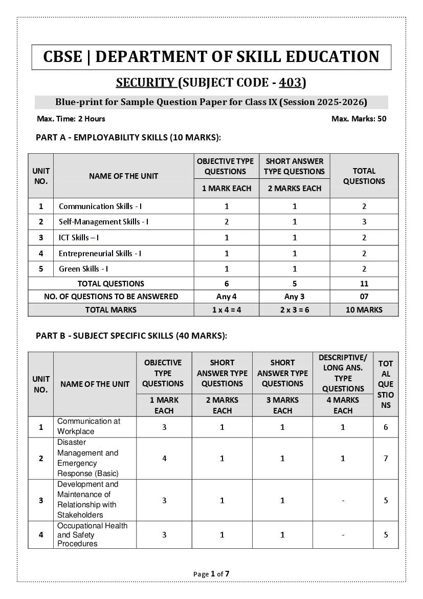 | Study Material Here | CBSE Sample Paper 2026 for Class 9 Security |