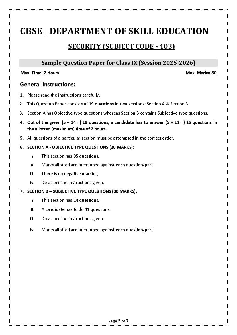 The complete CBSE class 9 Security sample paper 2026 is as follows. However the download link for cbse sample paper Security class 9 marking scheme is given above.