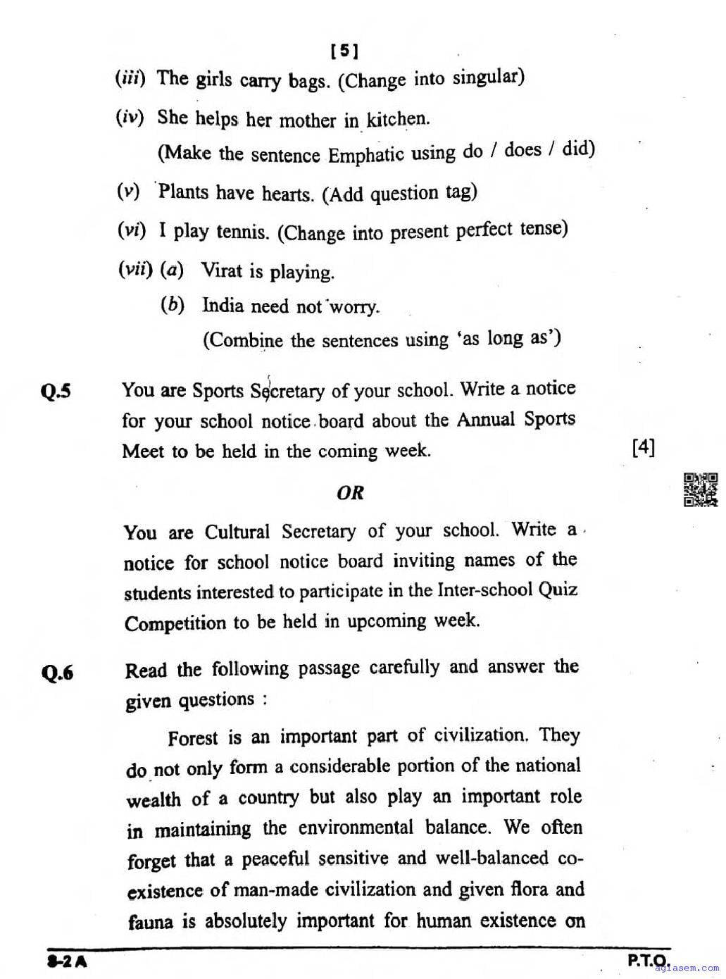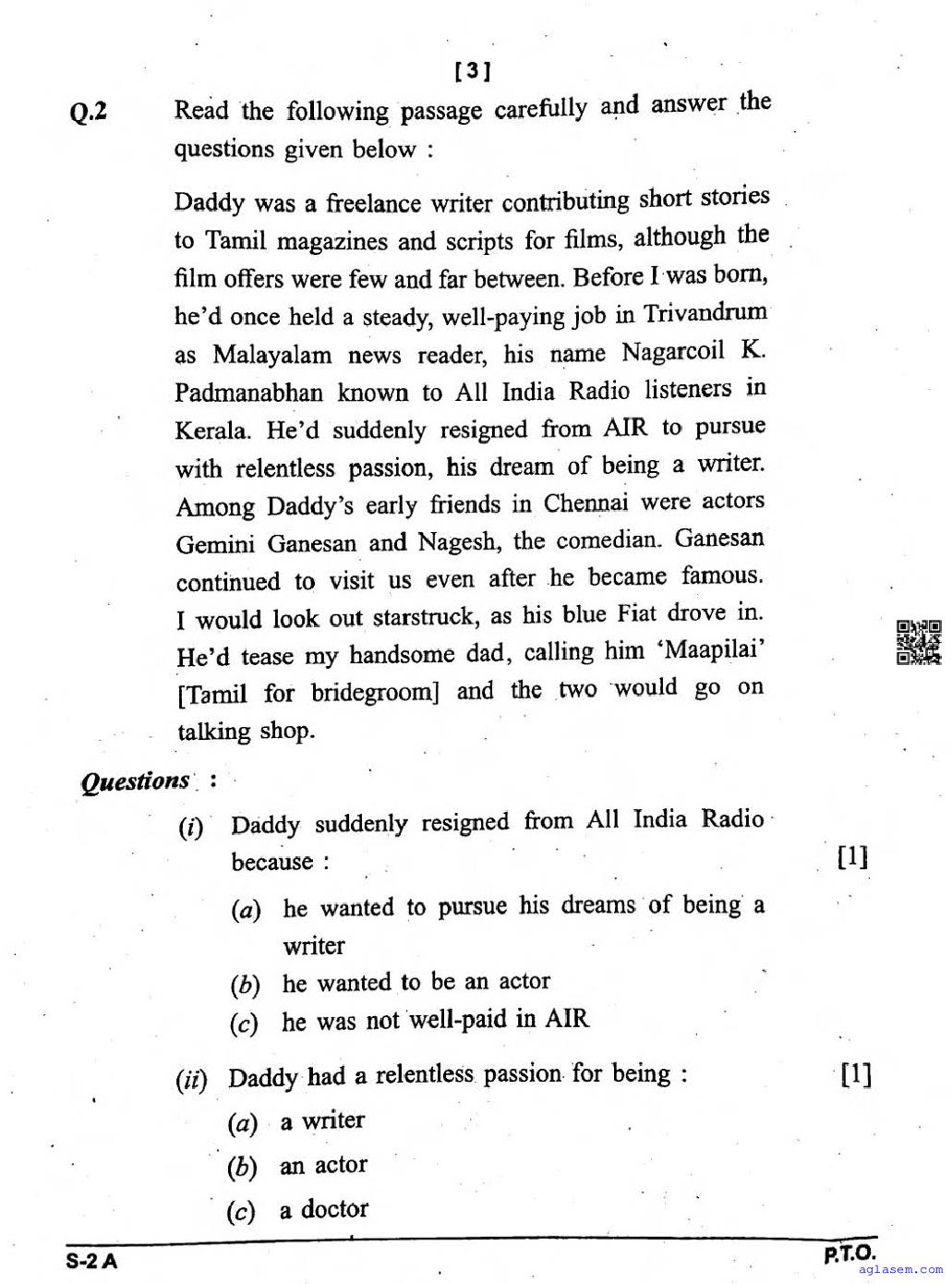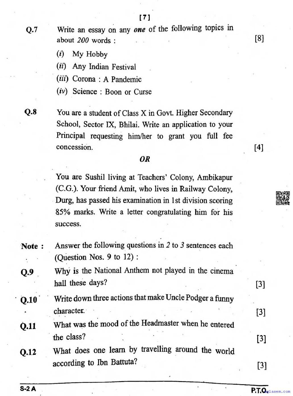 The CG Board Previous Year Question Paper for class 10 English is as follows.