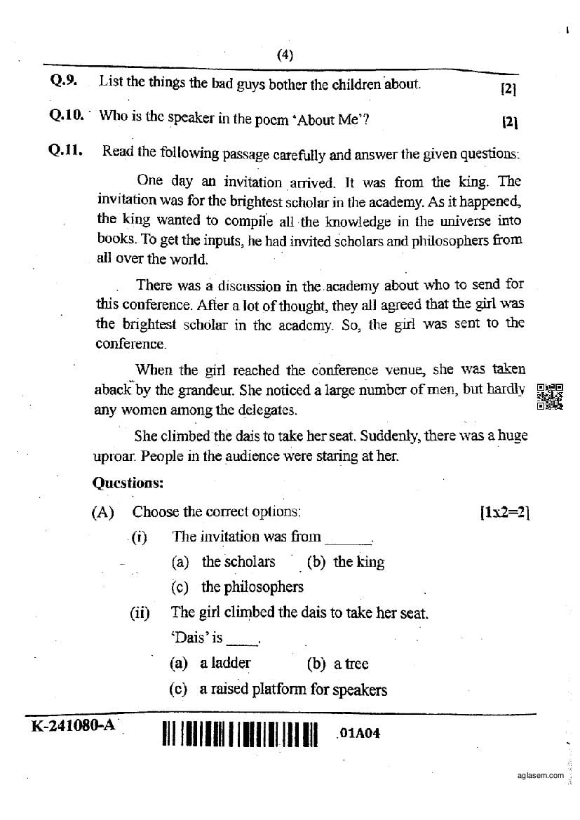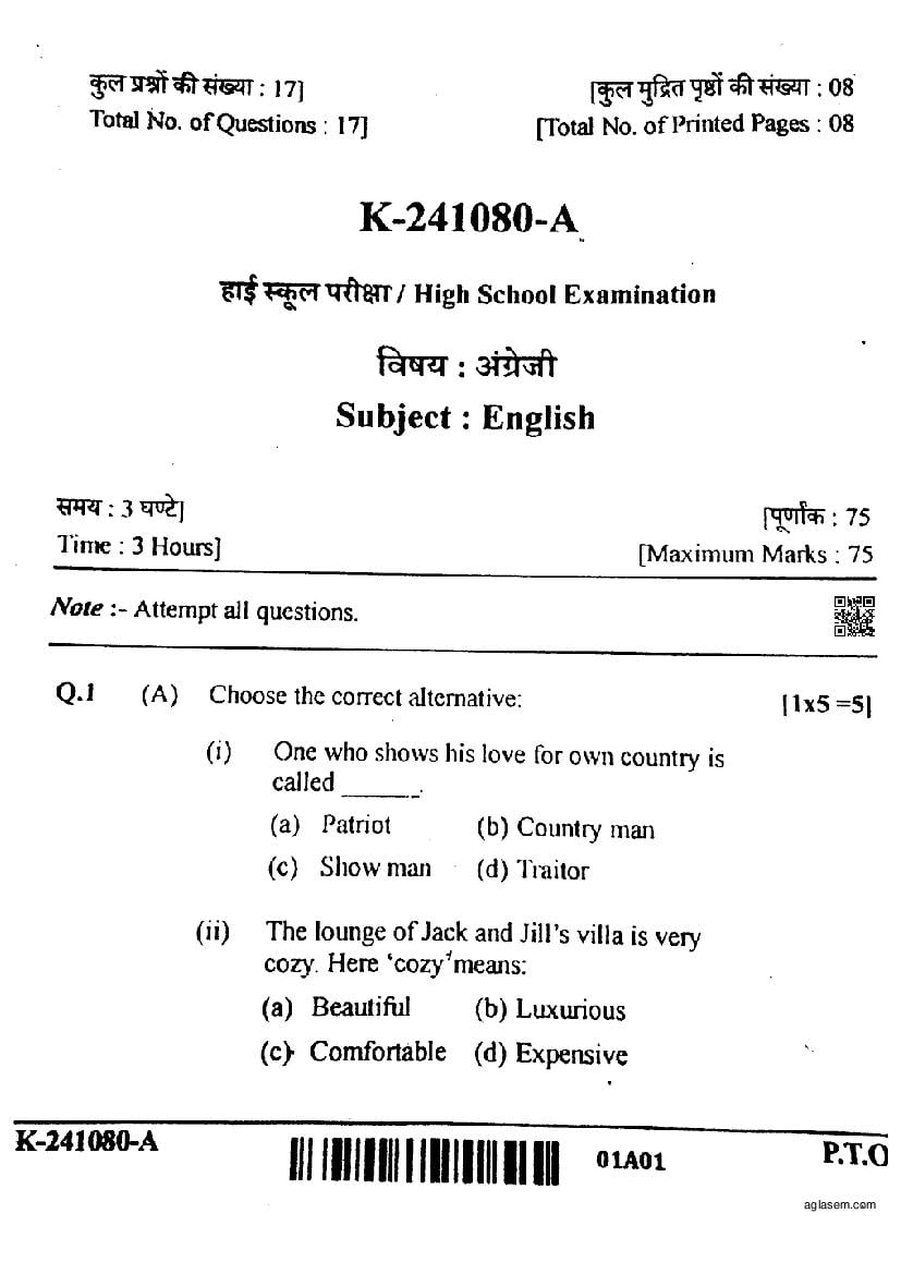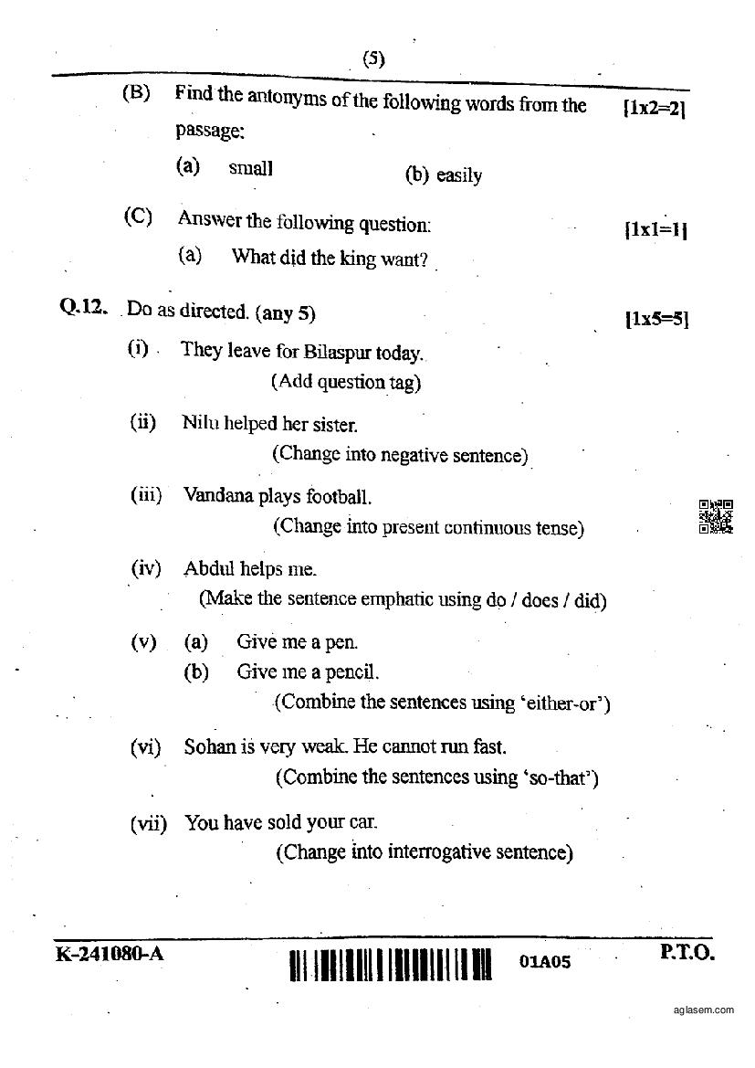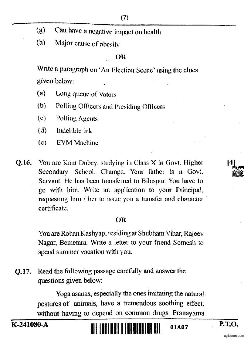 CG Board Class 10 English Question Paper 2024 is now available. You can download the CGBSE class 10th English Question Paper PDF from here on aglasem. This CG Board Class 10 Question Paper contains actual questions asked in English subject test in previous years with solutions. By solving this English paper, you wil increase your chances of getting full marks in Chhattisgarh Board exams of class 10th.