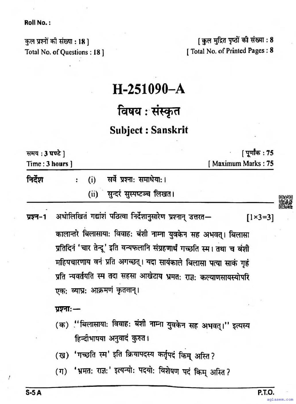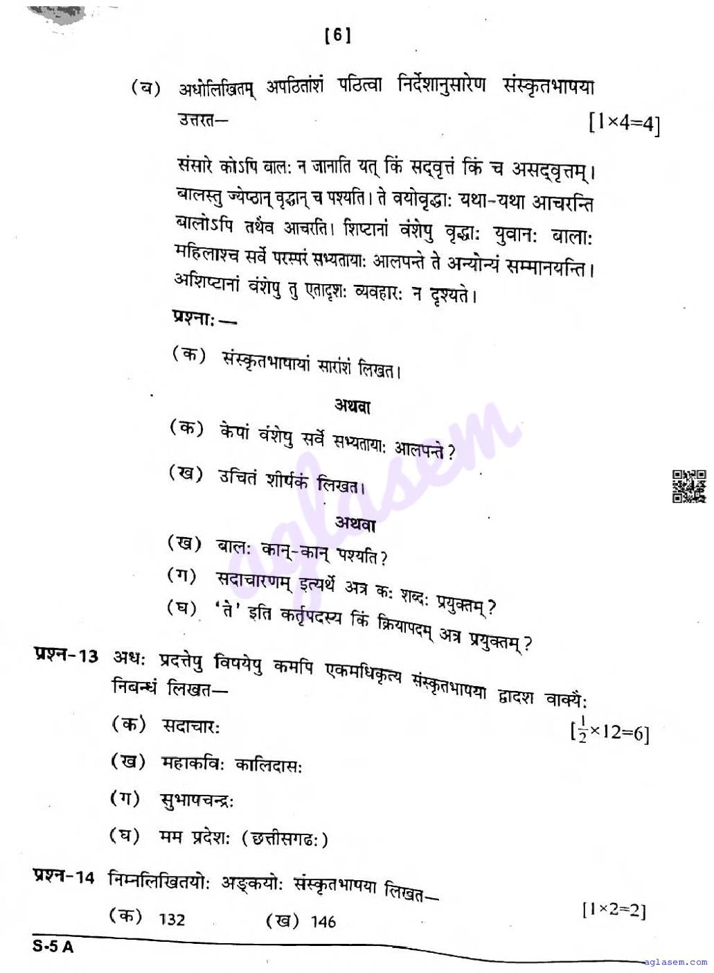 CG Board Class 10 Sanskrit Question Paper 2026 is now available. You can download the CGBSE class 10th Sanskrit Question Paper PDF from here on aglasem. This CG Board Class 10 Question Paper contains actual questions asked in Sanskrit subject test in previous years with solutions. By solving this Sanskrit paper, you wil increase your chances of getting full marks in Chhattisgarh Board exams of class 10th.