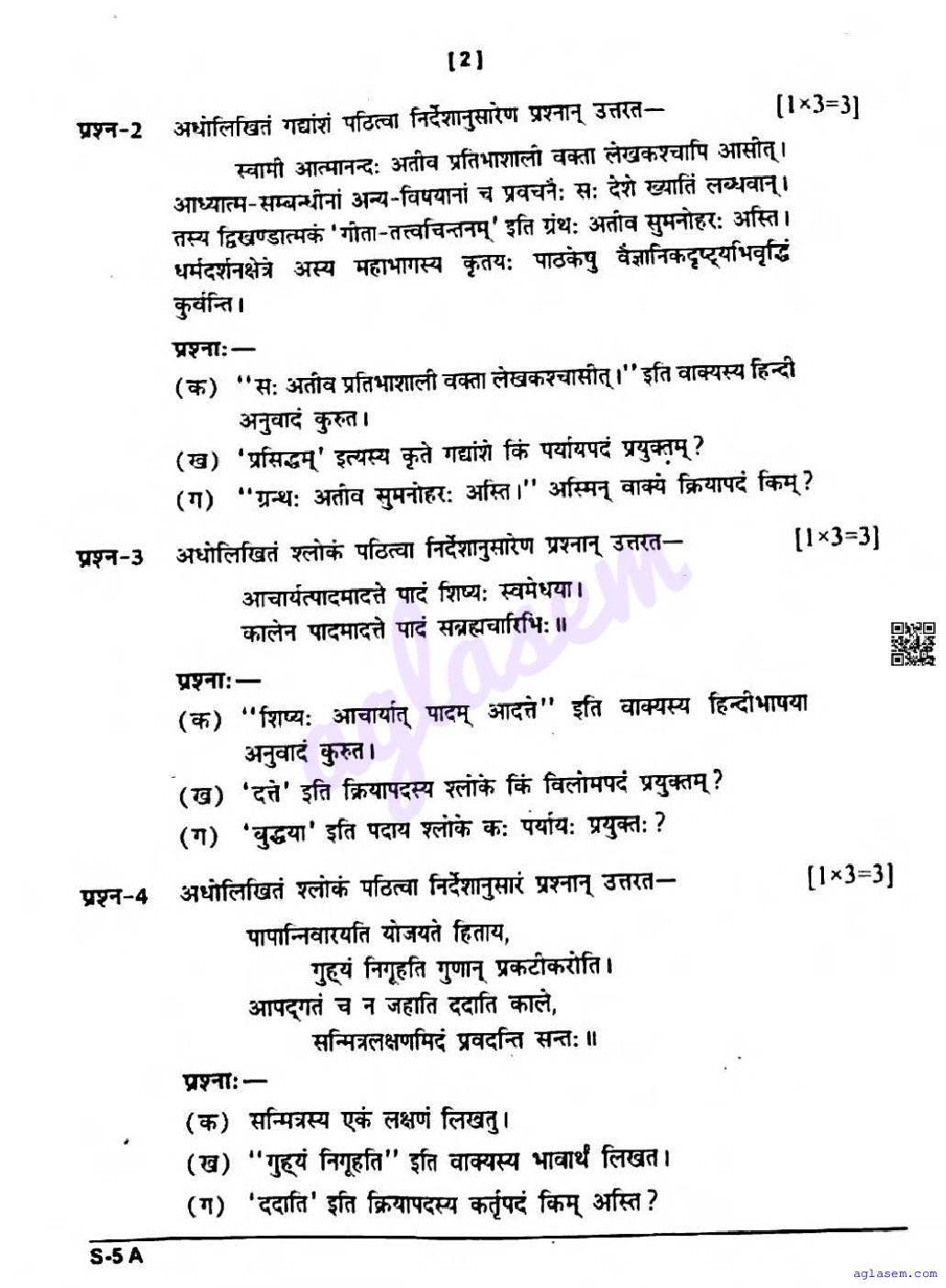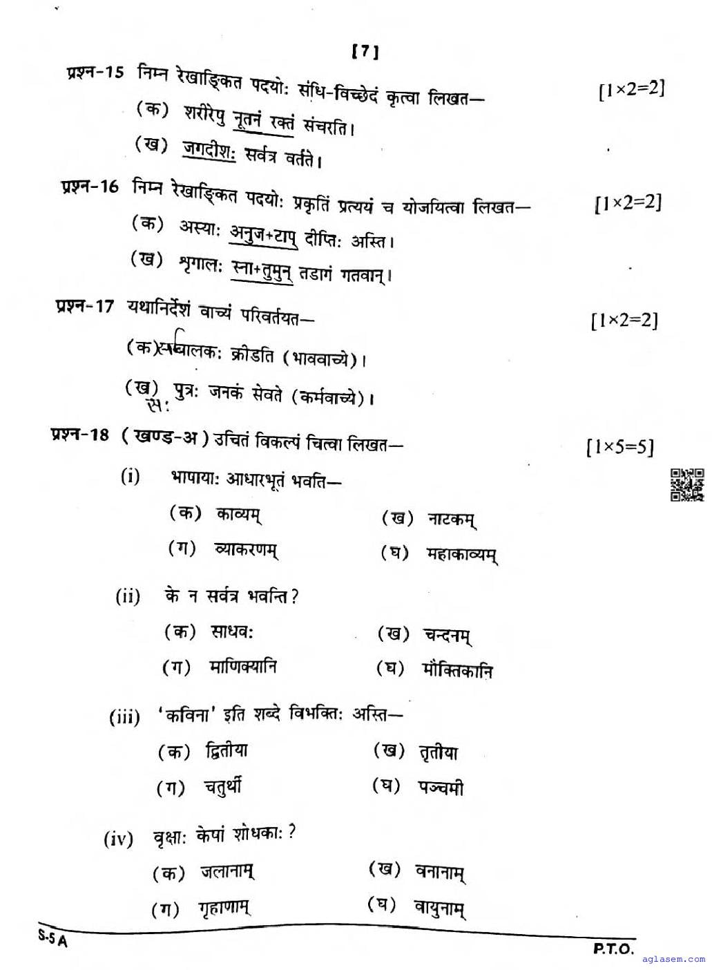 | Educational Resource Here | CGBSE Question Paper of Class 10 Sanskrit |