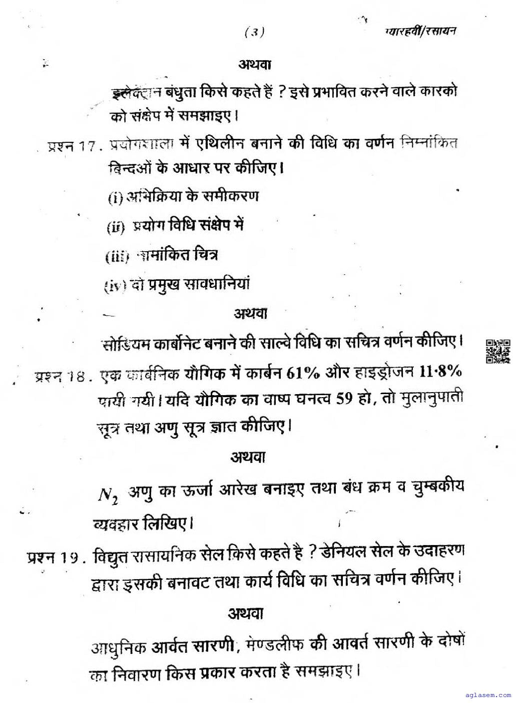 CG Board Class 11 Chemistry Question Paper 2026 is now available. You can download the CGBSE class 11th Chemistry Question Paper PDF from here on aglasem. This CG Board Class 11 Question Paper contains actual questions asked in Chemistry subject test in previous years with solutions. By solving this Chemistry paper, you wil increase your chances of getting full marks in Chhattisgarh Board exams of class 11th.