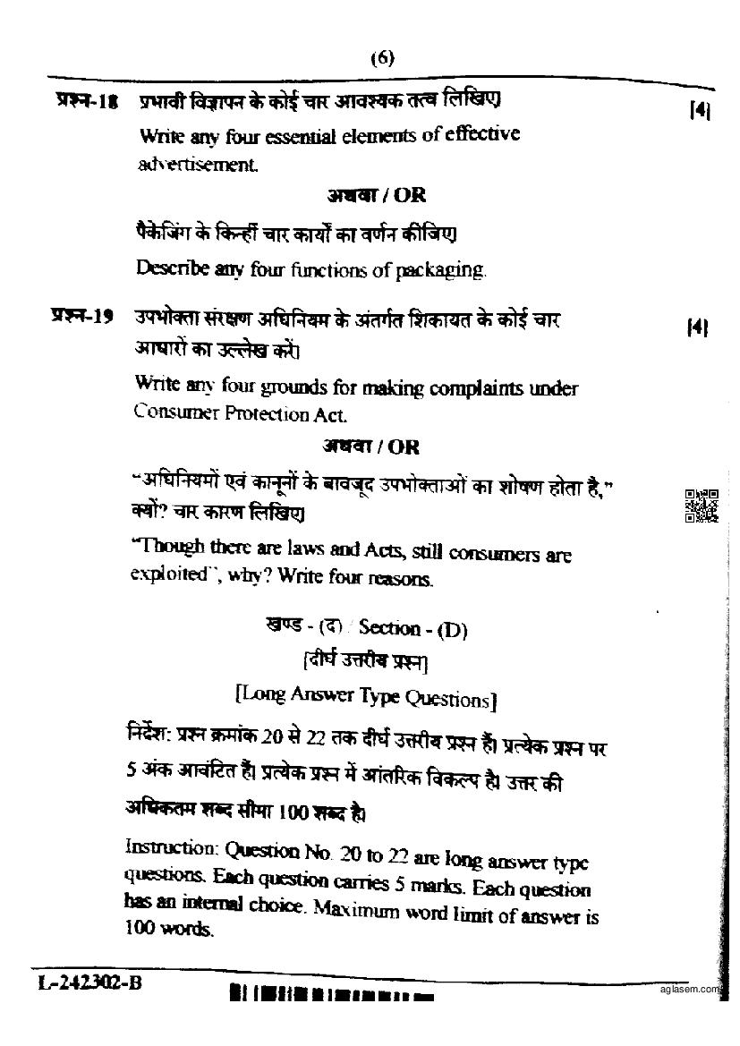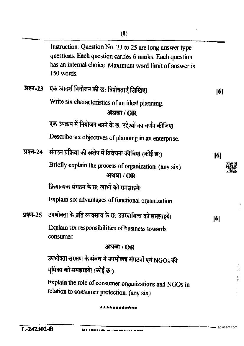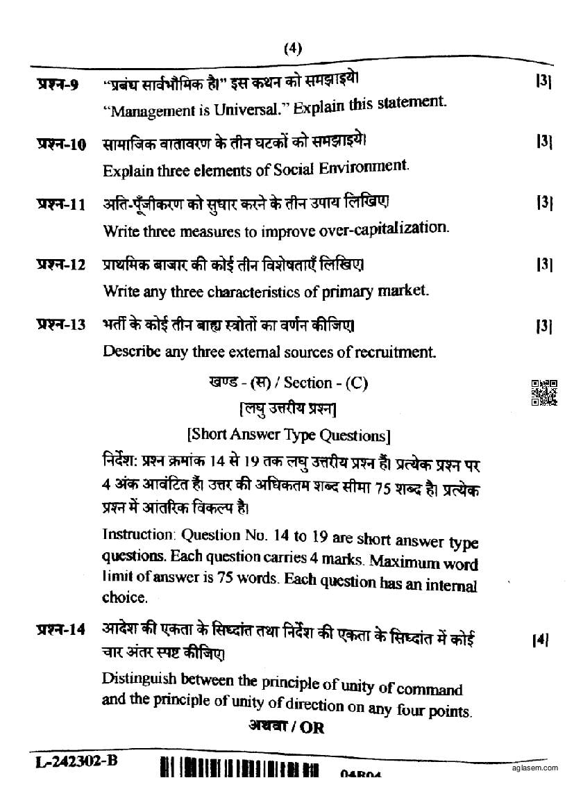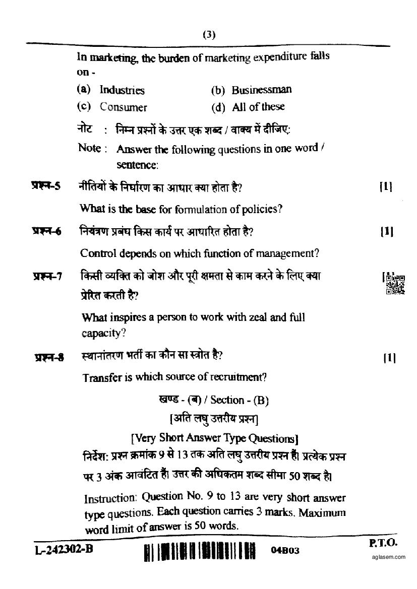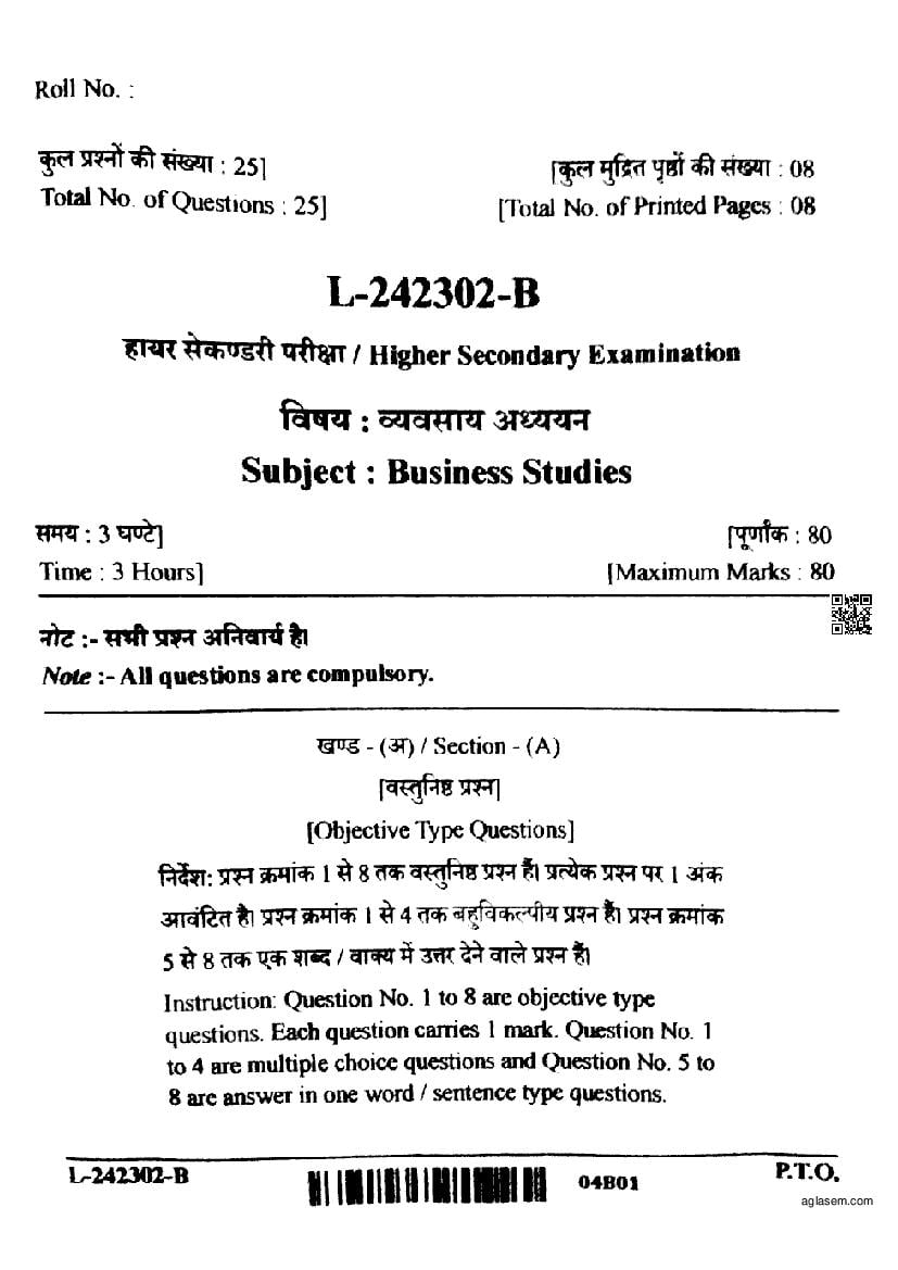 CG Board Class 12 Business Studies Question Paper 2024 is now available. You can download the CGBSE class 12th Business Studies Question Paper PDF from here on aglasem. This CG Board Class 12 Question Paper contains actual questions asked in Business Studies subject test in previous years with solutions. By solving this Business Studies paper, you wil increase your chances of getting full marks in Chhattisgarh Board exams of class 12th.